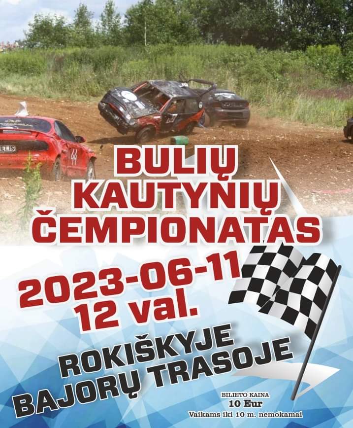„Bulių kautynių čempionatas“ Rokiškyje Bajorų trasoje birželio 11 d. val. Bilieto kaina 10 eur., vaikams iki 10 m. nemokamai.