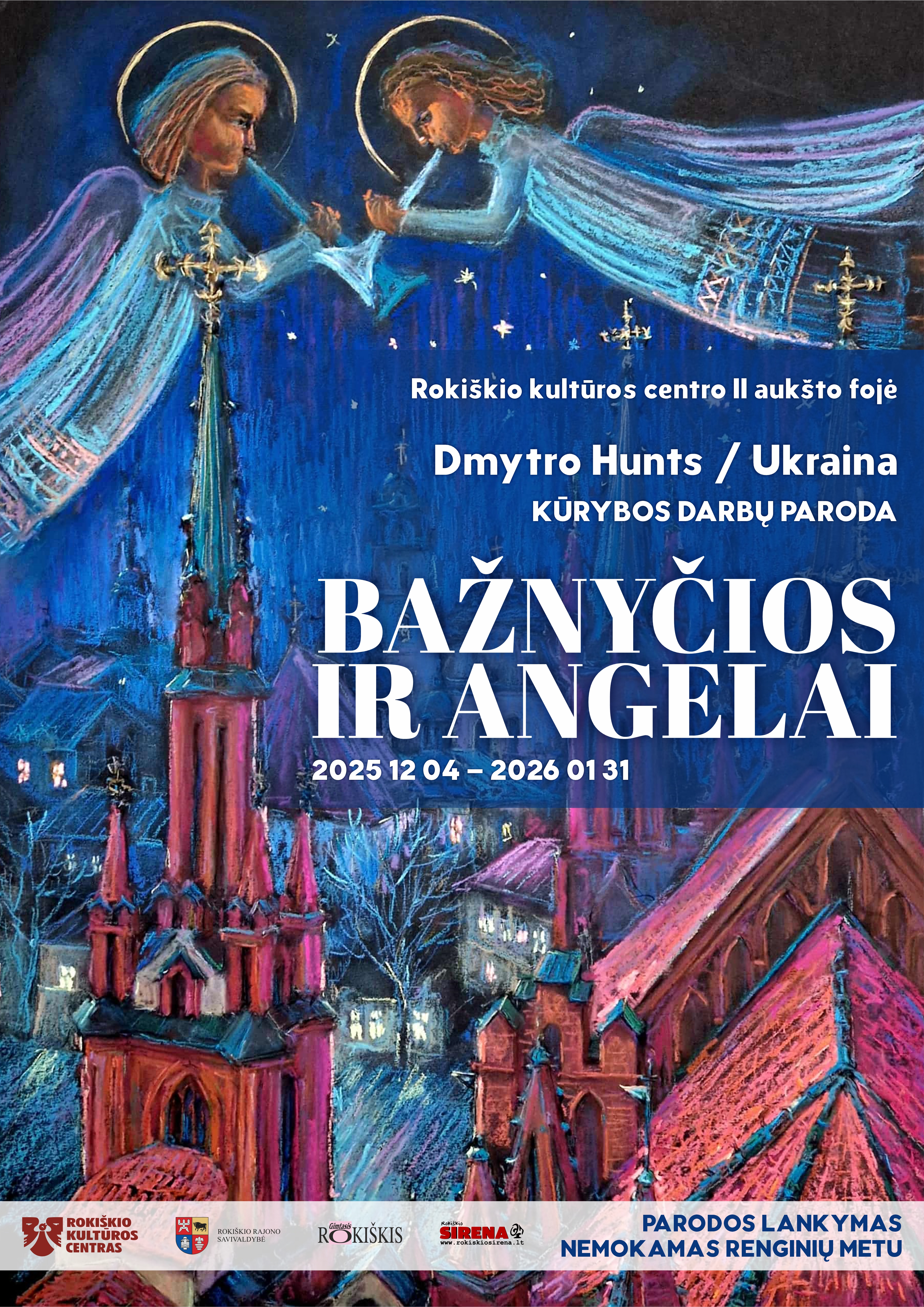 Rokiškio kultūros centro II a. fojė veikia Dmytro Hunts (Ukraina) tapybos darbų paroda „Bažnyčios ir angelai“.