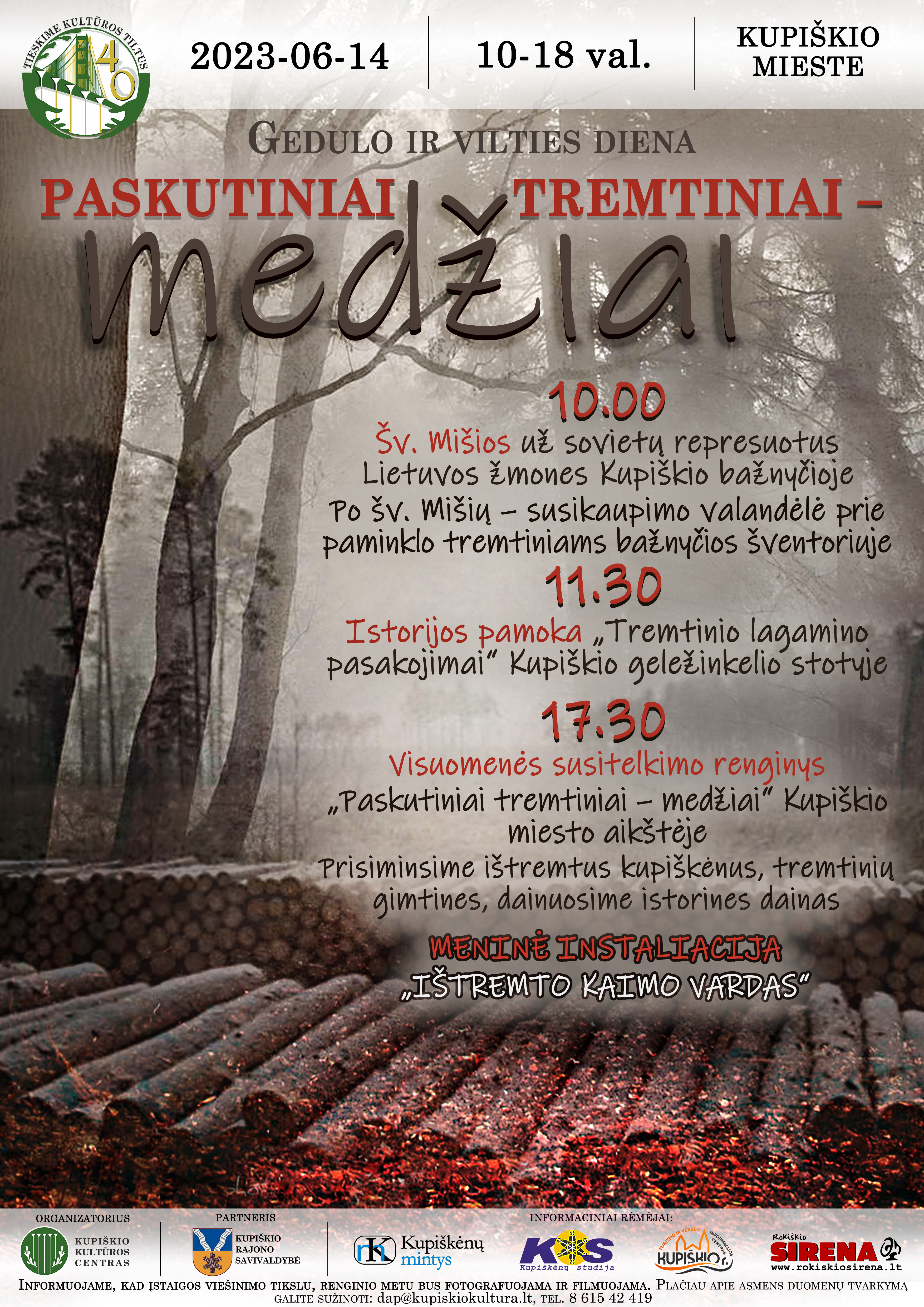 17.30 – Visuomenės susitelkimo renginys „Paskutiniai tremtiniai – medžiai“ Kupiškio miesto aikštėje.