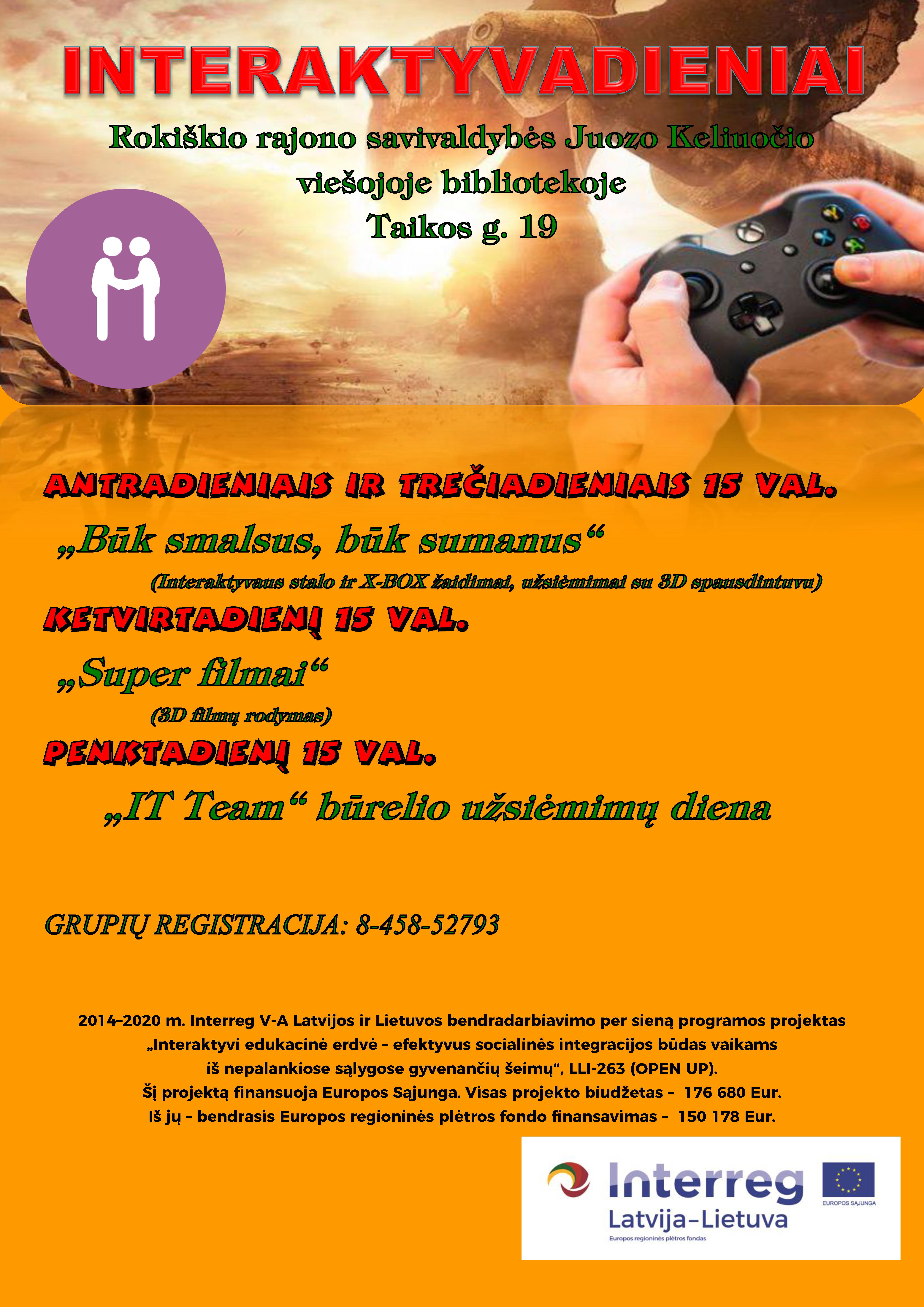 Lapkričio 27,28 d. 15 val. – Interaktyvadieniai: „Būk smalsus, būk sumanus“, Interaktyvaus stalo ir X-BOX žaidimai, užsiėmimai su 3D spausdintuvu vaikams ir jaunimui.