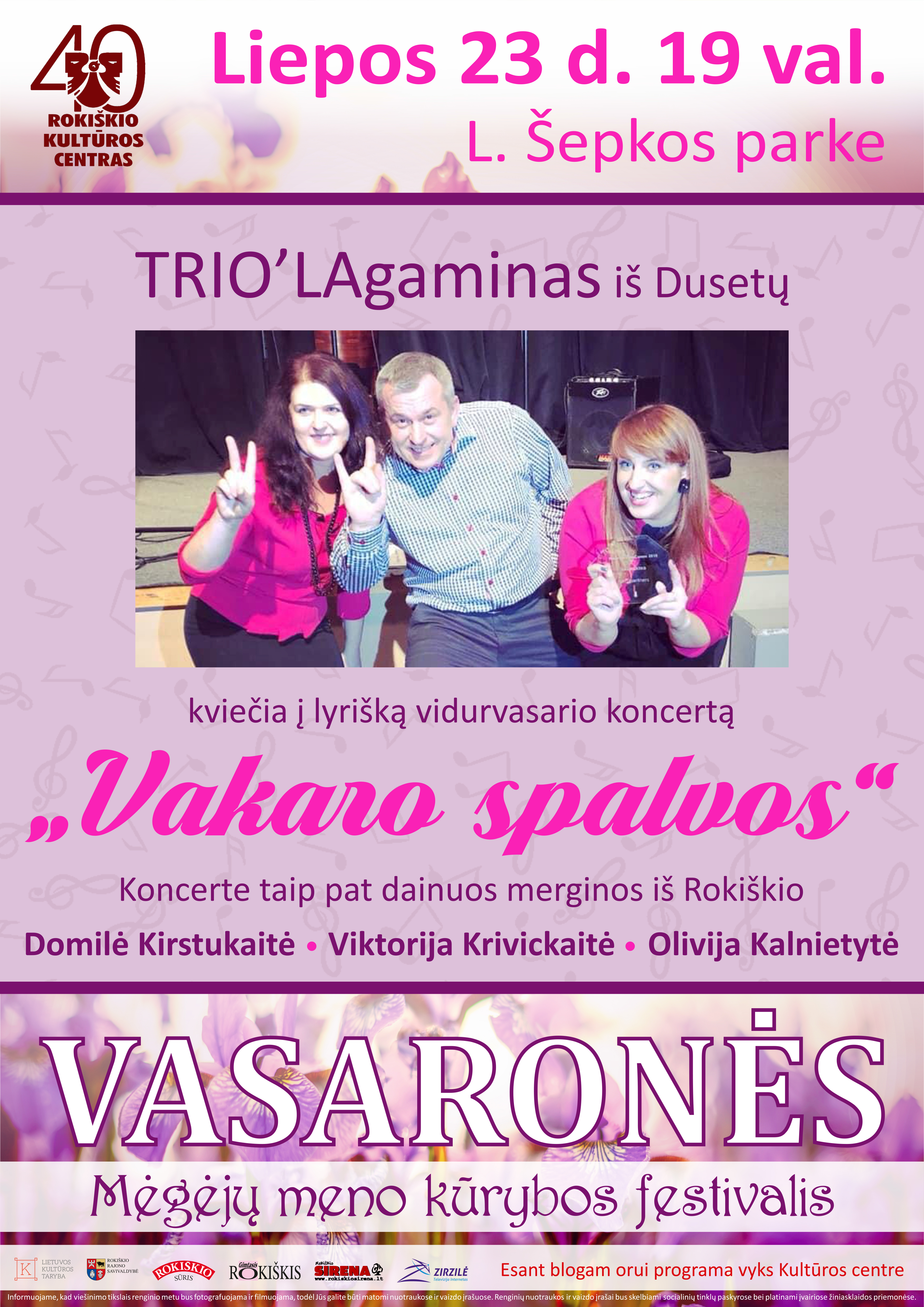Liepos 23 d. 19 val. „Vasaronėse“ – lyriškas vidurvasario vakaras su: TRIO'LAgaminu iš Dusetų, Domile Kirstukaite, Viktorija Krivickaite, Olivija Kalnietyte.