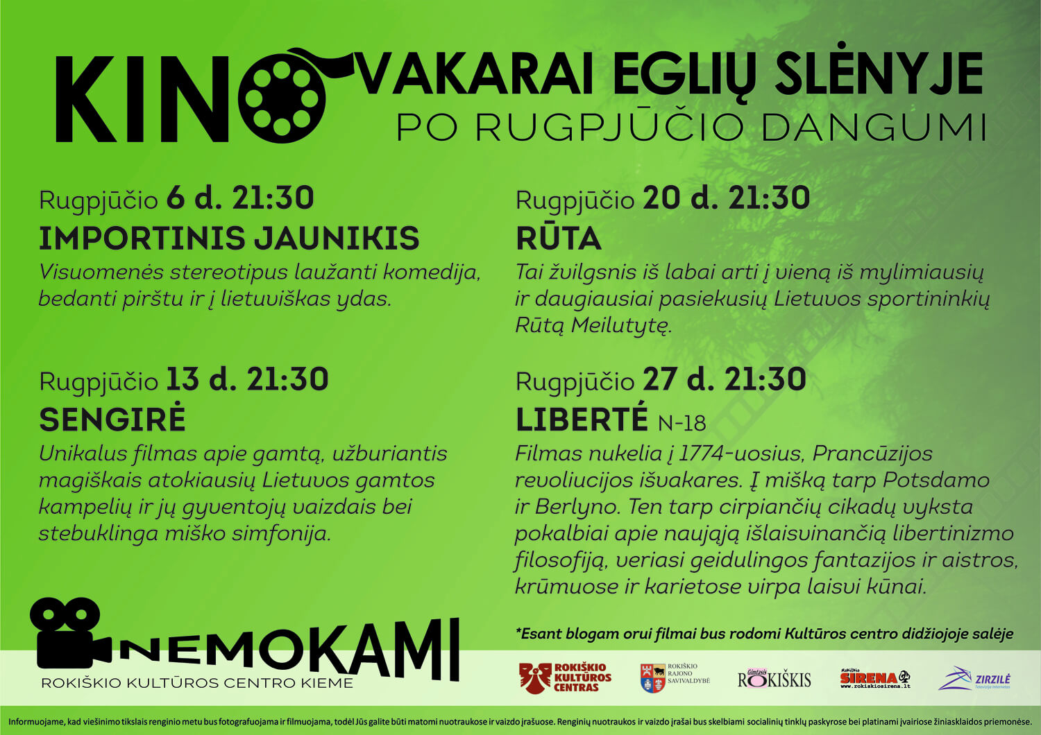 Kino vakarai „Eglių slėnyje“ po rugpjūčio dangumi sugrįžta! Kviečiame į NEMOKAMUS kino vakarus EGLIŲ SLĖNYJE (prie Rokiškio kultūros centro).