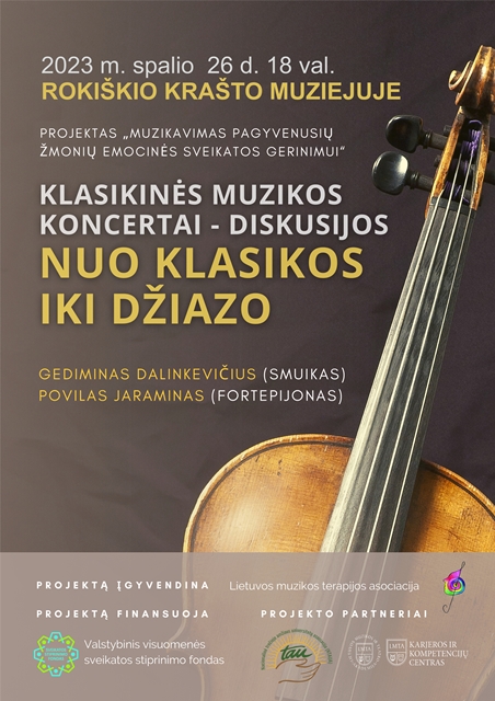 Spalio 26 d.18 val. Rokiškio krašto muziejuje vyks smuikininko Gedimino Dalinkevičiaus ir pianisto Povilo Jaramino koncertas.
