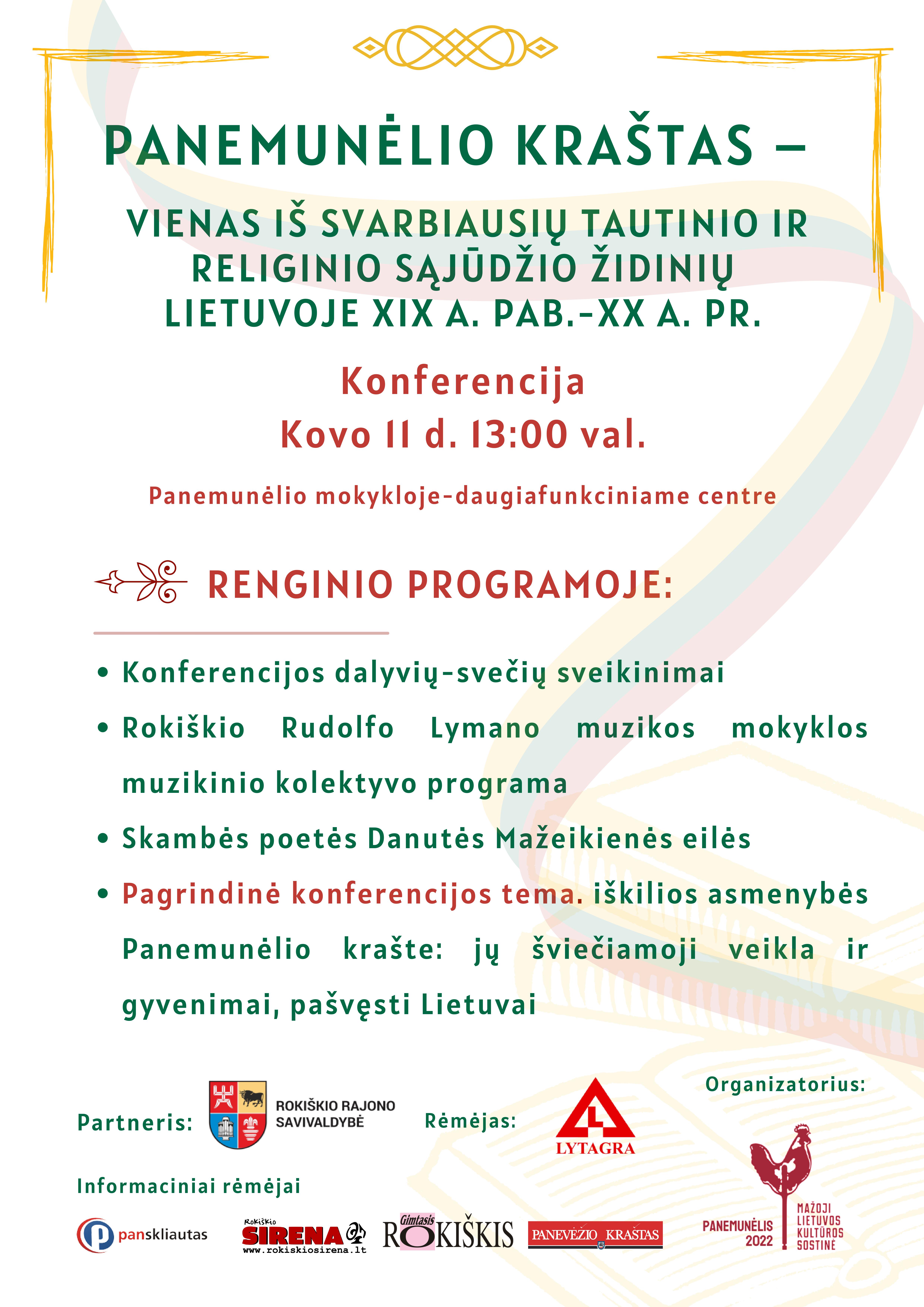 Kovo 11 d. 13 val. Panemunėlio mokykloje-daugiafunkciniame centre - konferencija „Panemunėlio kraštas - vienas iš svarbiausių tautinio ir religinio sąjūdžio židinių Lietuvoje XIX a. pab. - XX a. pr.“.