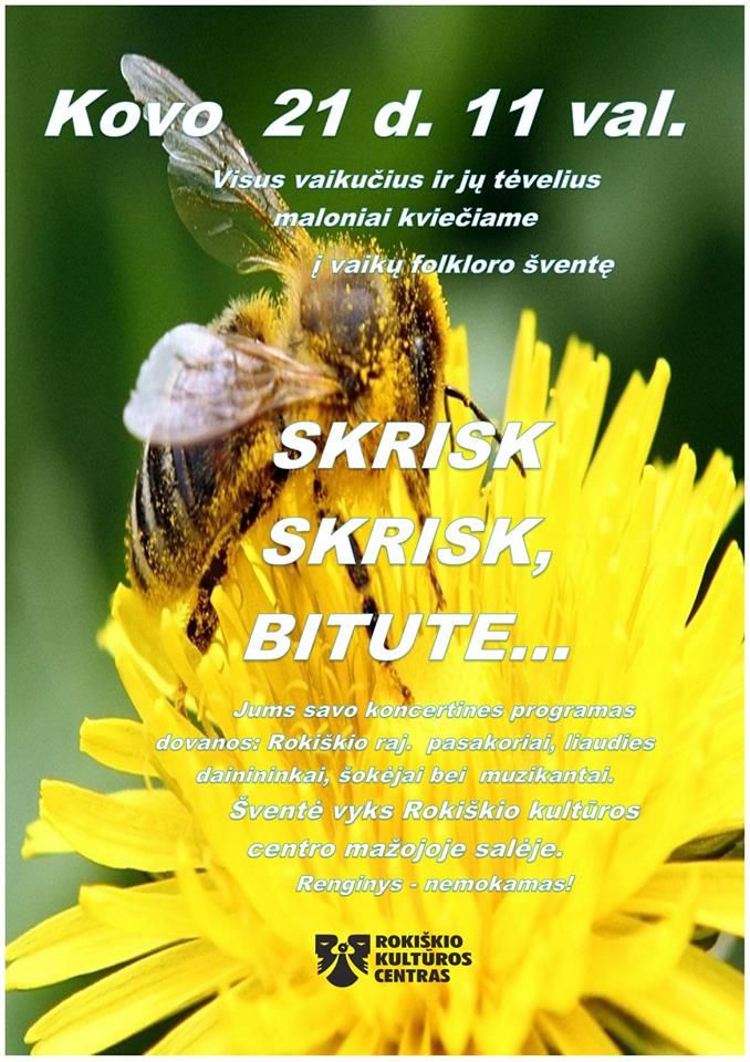 Kovo 21 d. 11.00 val. Vaikų folkloro šventė "Skrisk skrisk, Bitute"