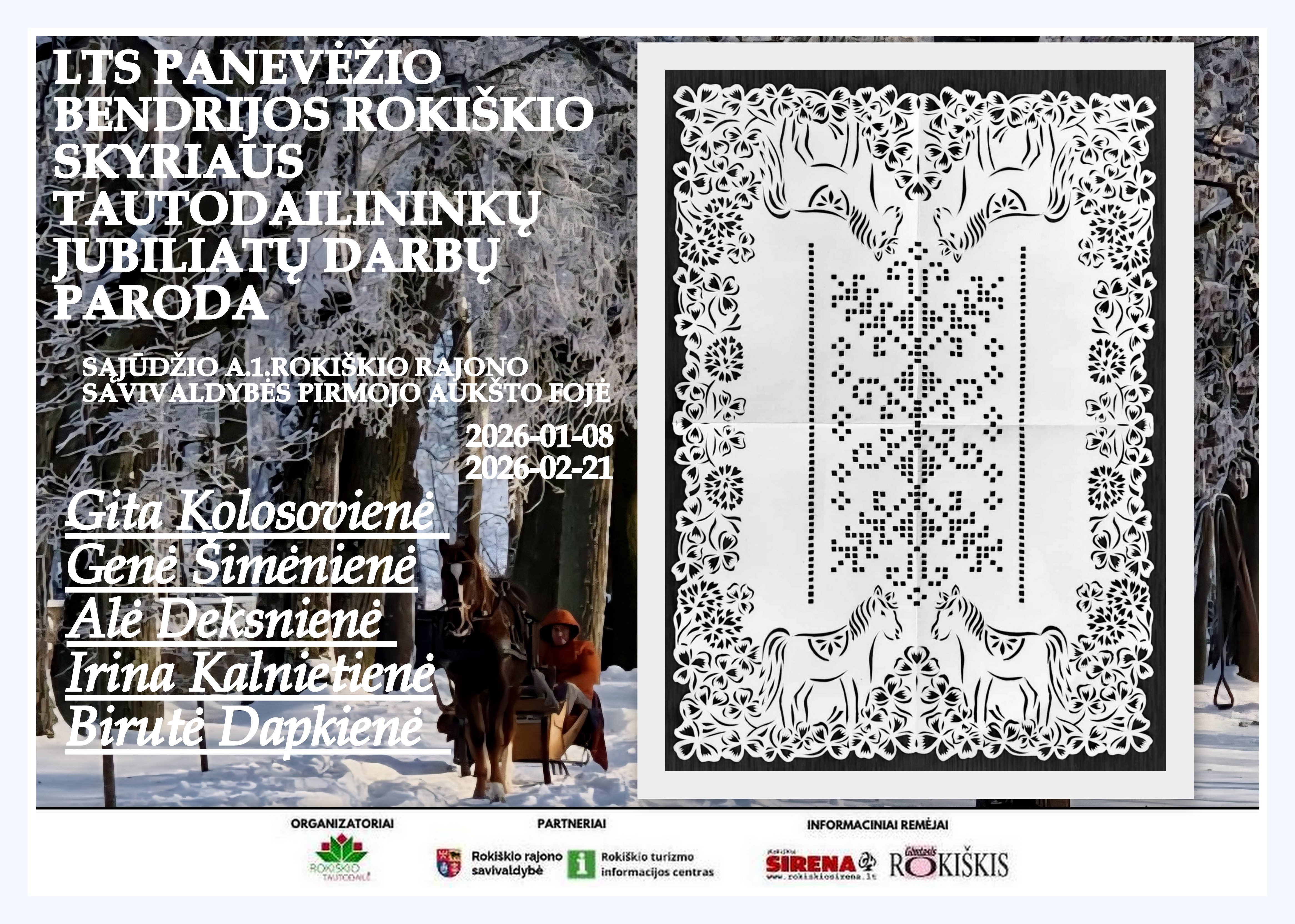 Kviečiame į LTS Panevėžio bendrijos Rokiškio skyriaus tautodailininkų jubiliatų darbų parodos pristatymą.
