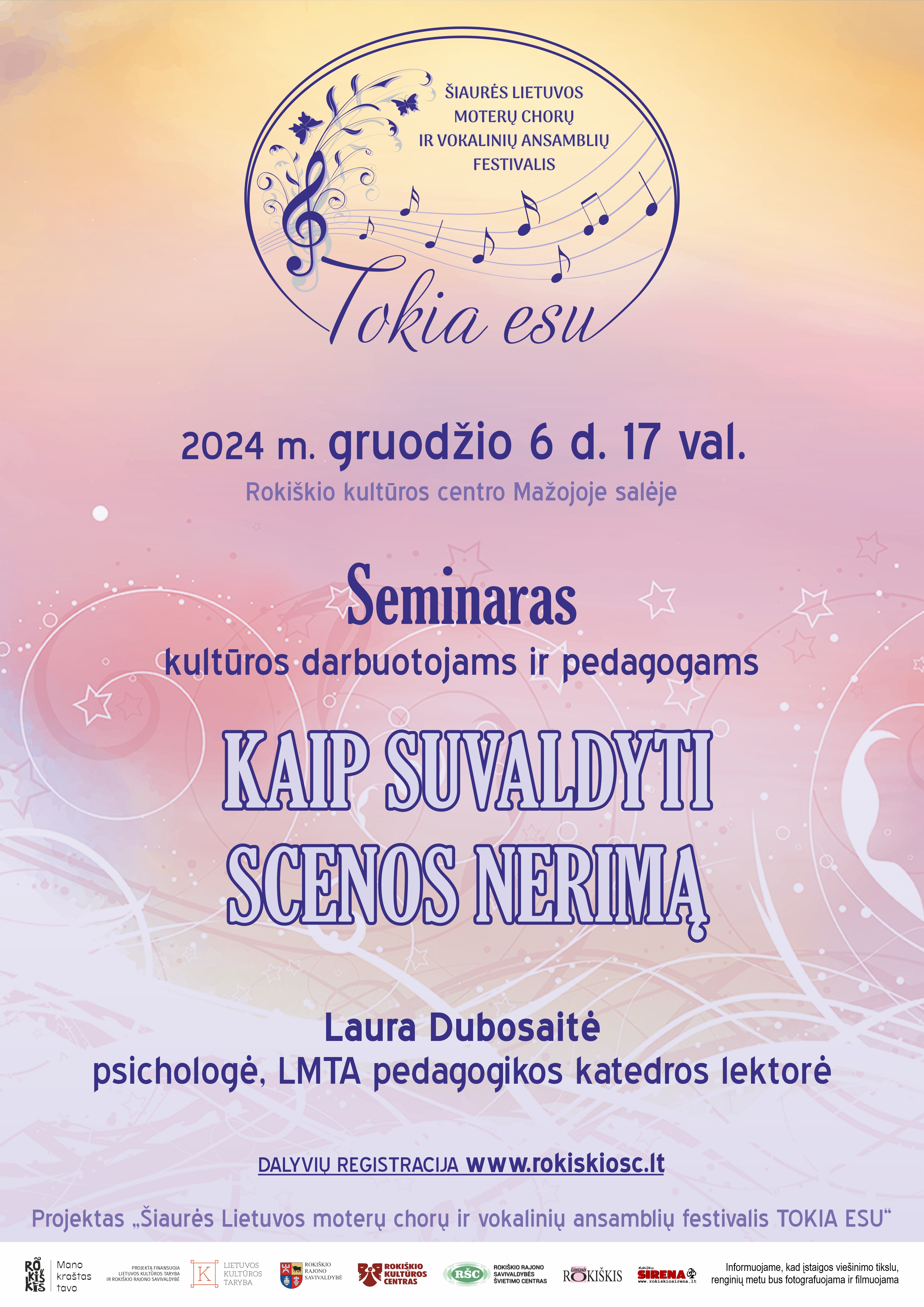 Projektą „Šiaurės Lietuvos moterų chorų ir vokalinių ansamblių festivalis TOKIA ESU“ finansuoja Lietuvos kultūros taryba ir Rokiškio rajono savivaldybė.