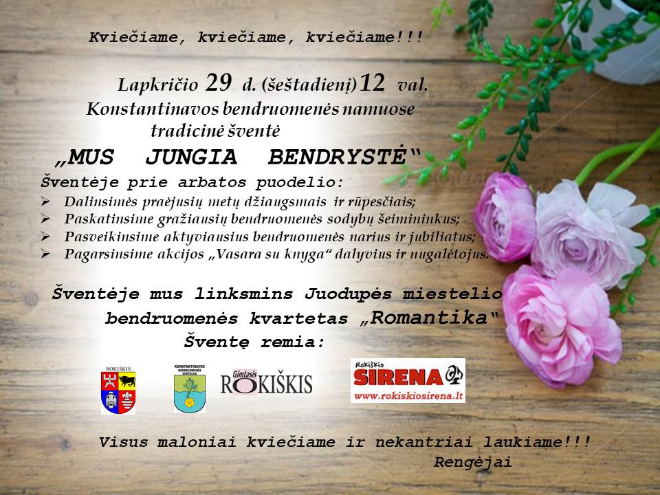 Lapkričio 29 d. 12 val. kviečiame į tradicinę Konstantinavos bendruomenės šventę „Mus jungia bendrystė“.