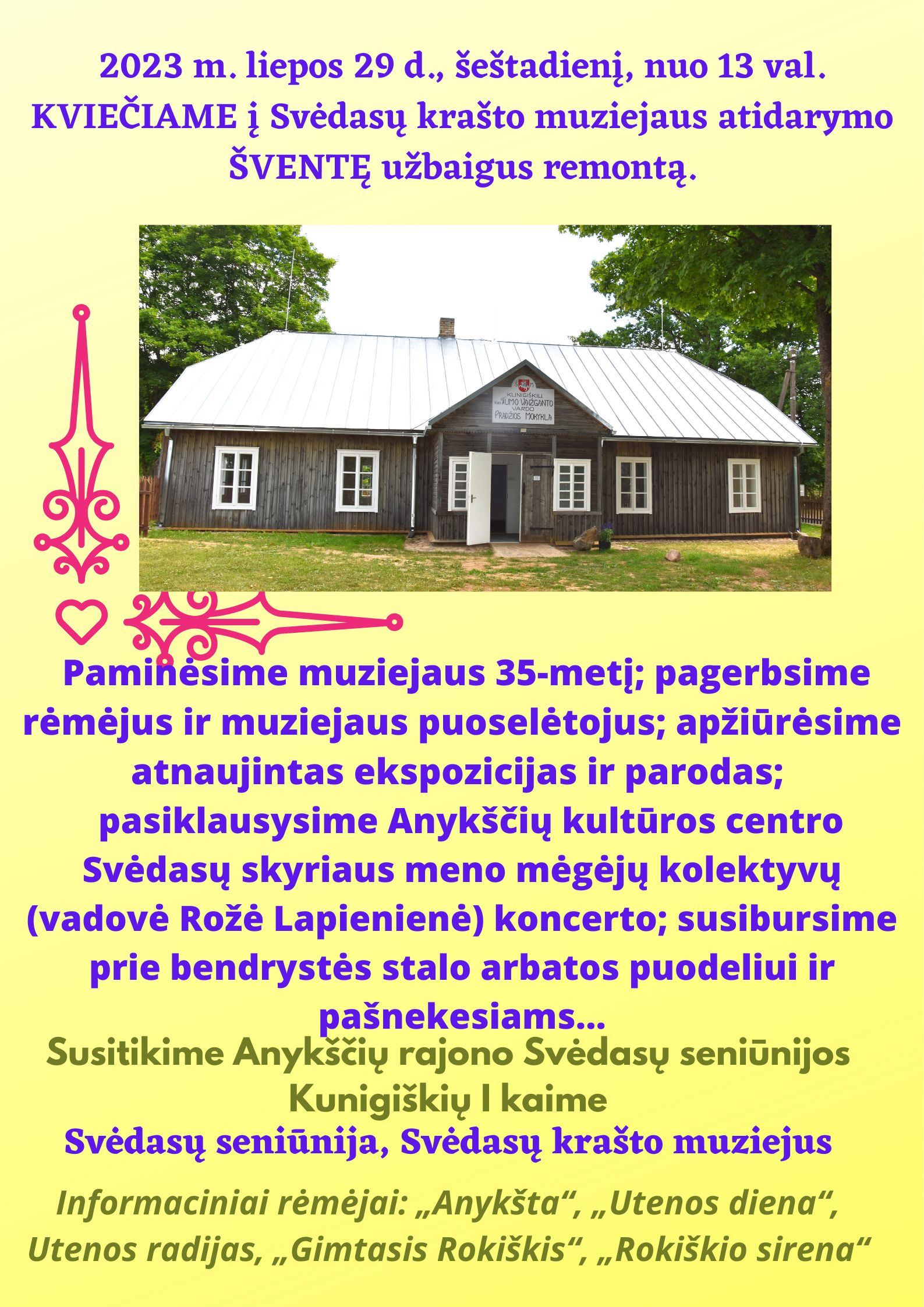 Liepos 29 d. šeštadienį, nuo 13 val. Kviečiame į Svėdasų krašto muziejaus atidarymo šventę užbaigus remontą.