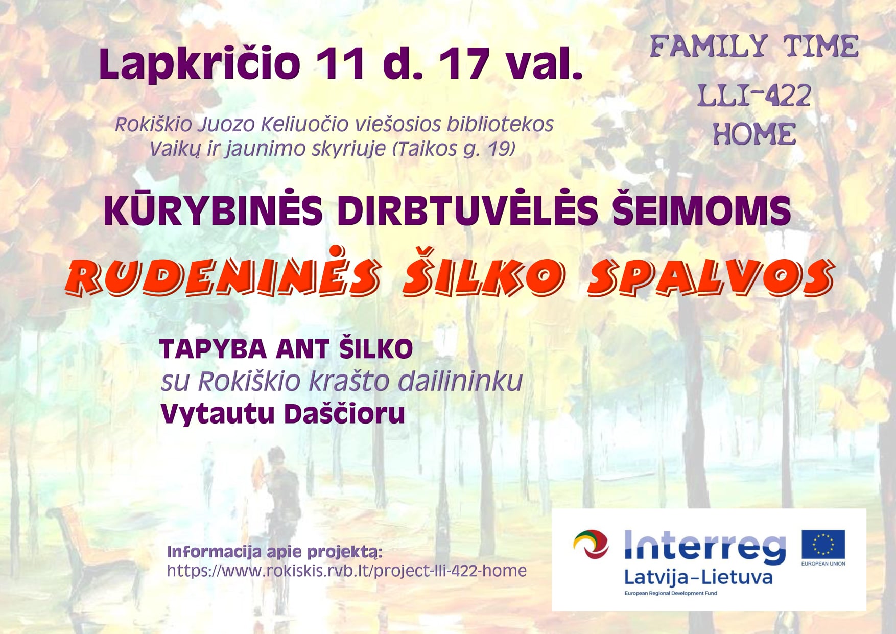 Lapkričio 11 d. 17 val. Rokiškio rajono savivaldybės Juozo Keliuočio viešosios bibliotekos Vaikų ir jaunimo skyriuje (Taikos g. 19) vyks kūrybinės dirbtuvėlės šeimoms „Rudeninės šilko spalvos“.