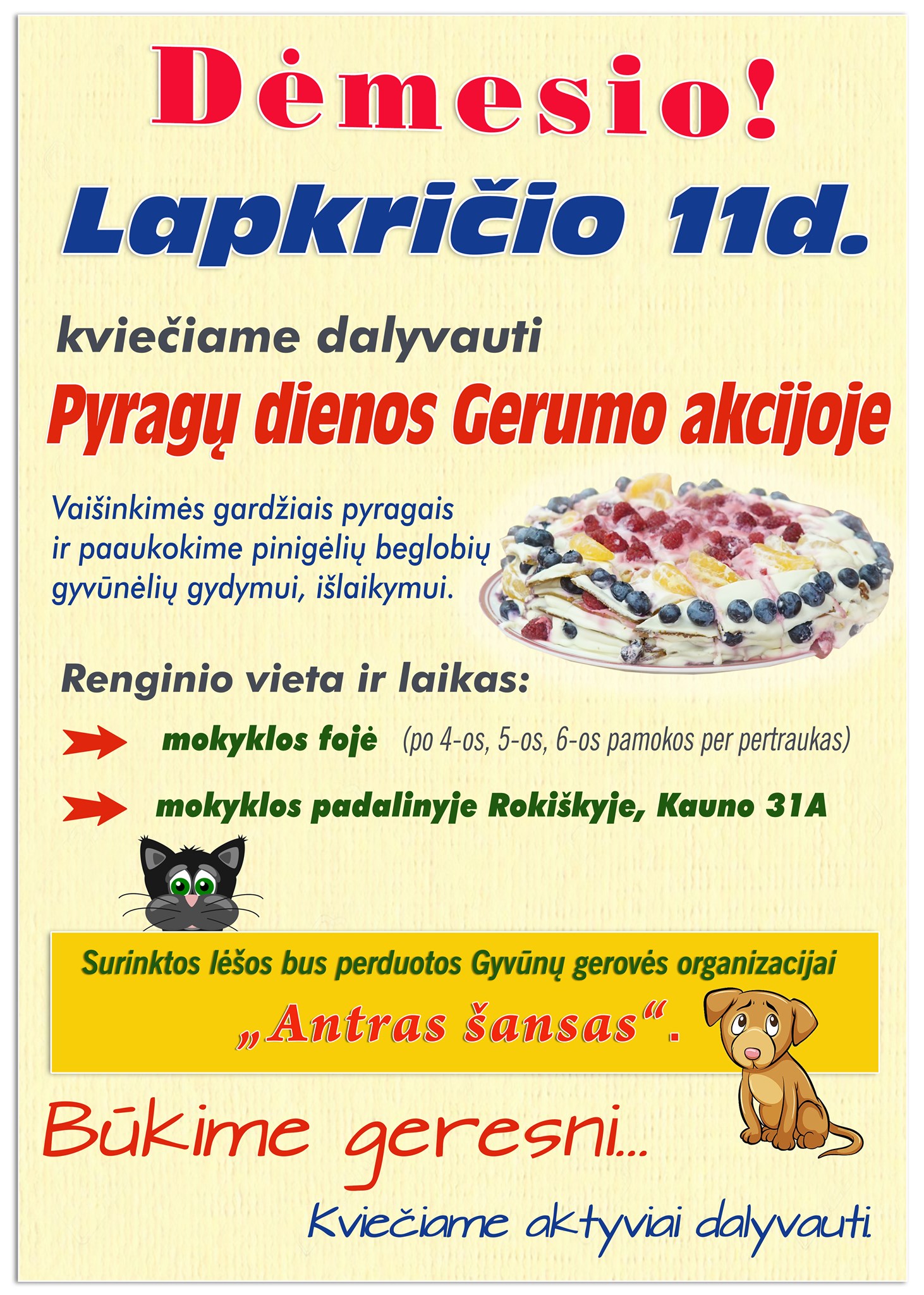 Lapkričio 11 d. Rokiškio profesinio mokymo centras kviečia dalyvauti Pyragų dienos Gerumo akcijoje.