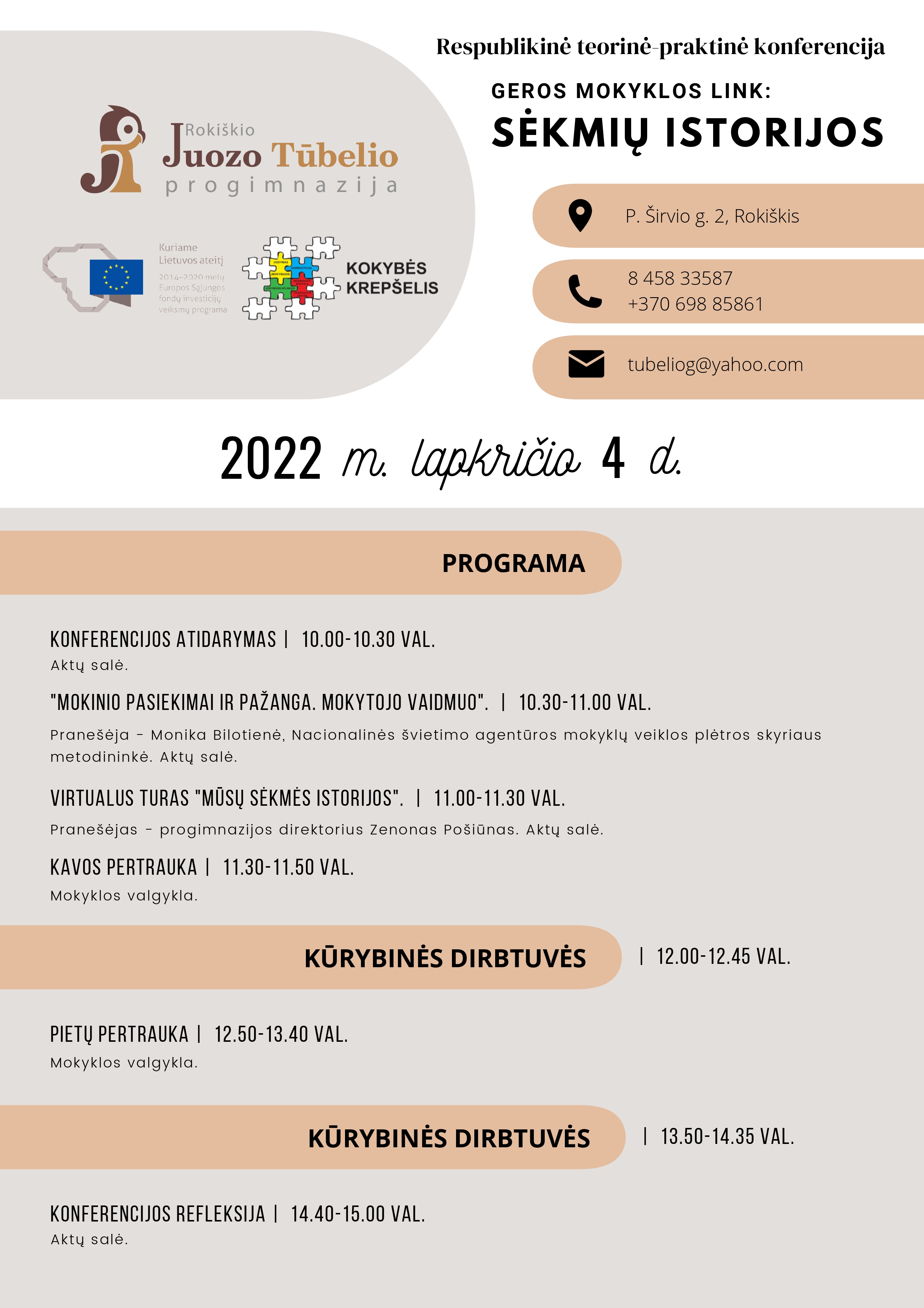Lapkričio 4 d. Rokiškio Juozo Tūbelio progimnazijoje vyks Respublikinė teorinė-praktinė konferencija „Geros mokyklos link: sėkmių istorijos".