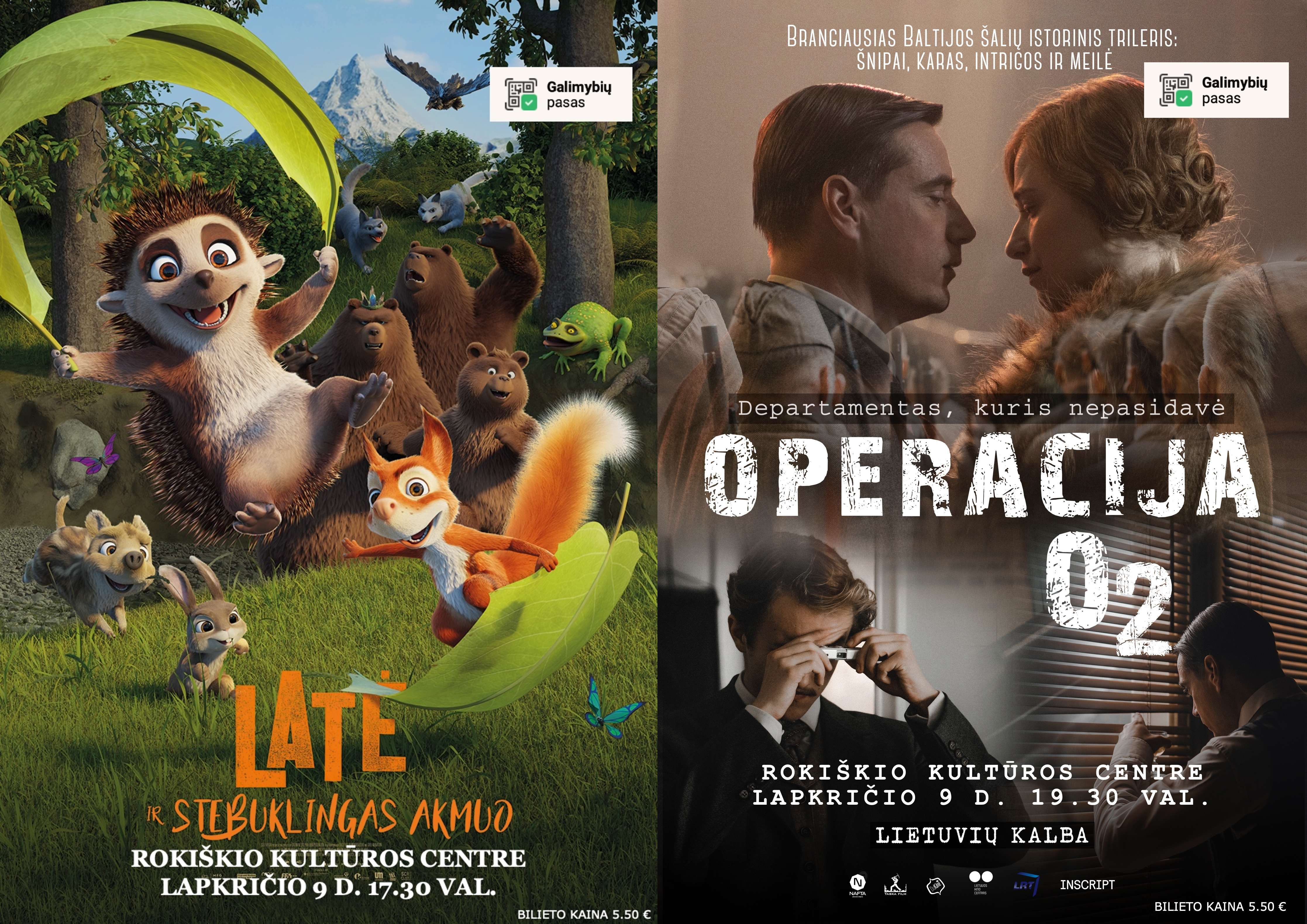 Lapkričio 9 d. Rokiškio kultūros centre vyks net du kino seansai.