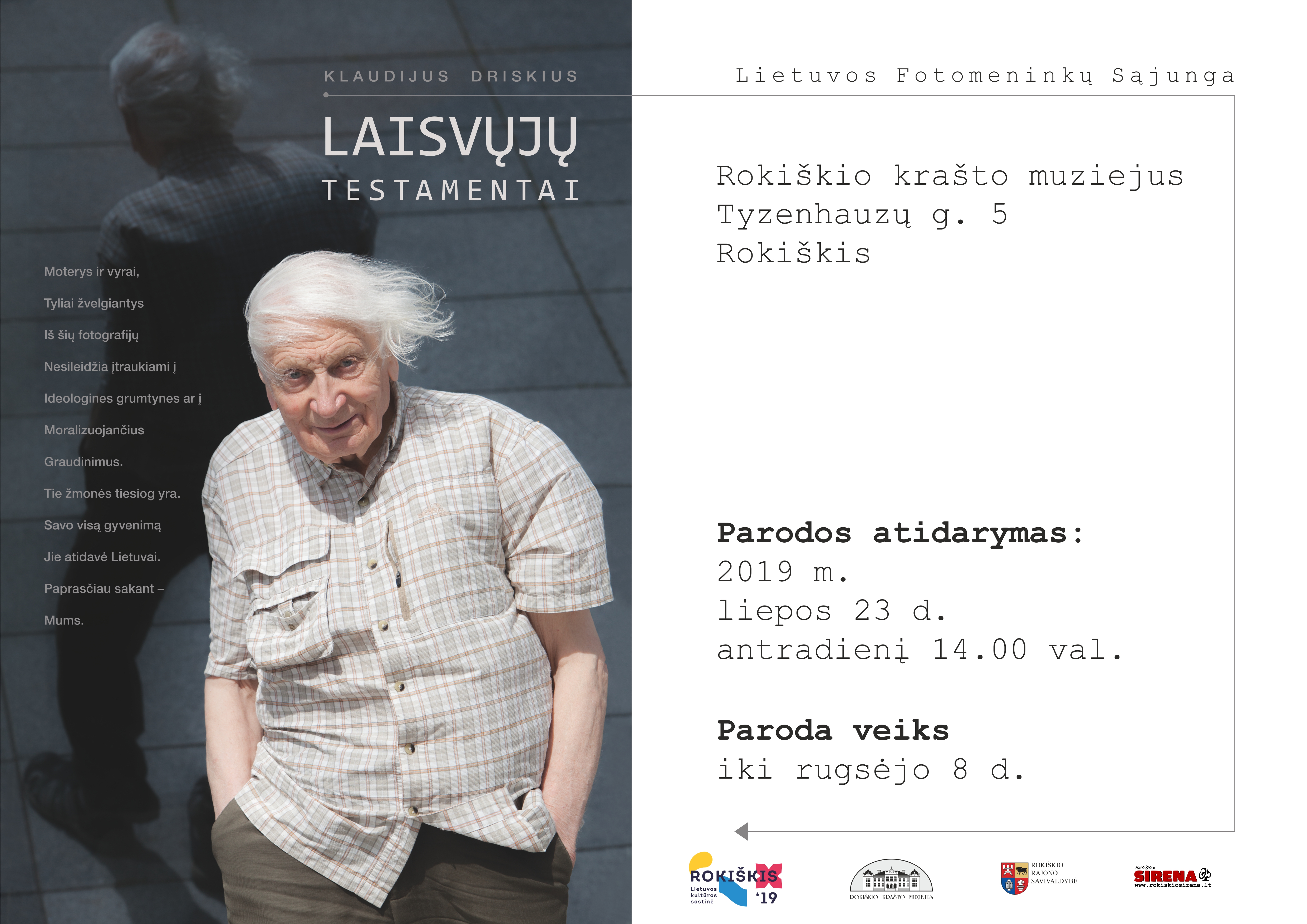 2019 m. liepos 23 d., 14.00 val. Rokiškio krašto muziejuje Klaudijaus Driskiaus fotografijų parodos „Laisvųjų testamentai“ atidarymas.