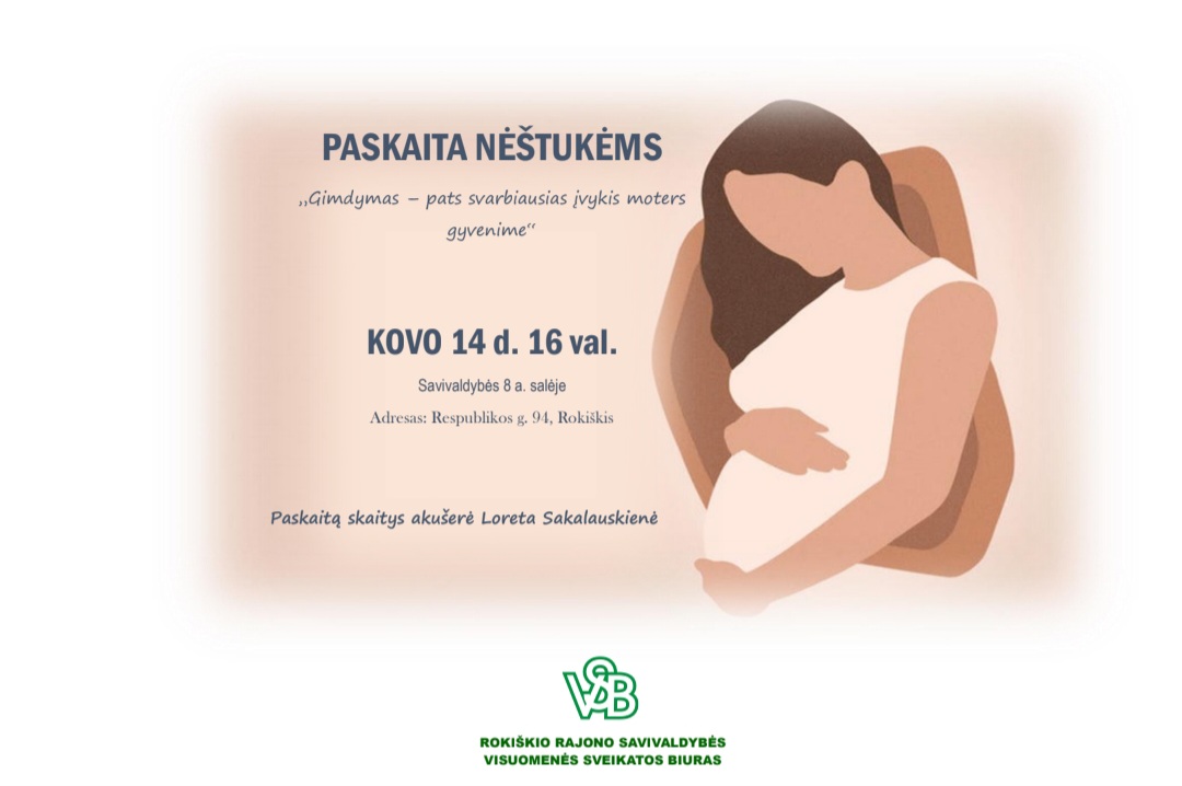 Kovo 14 d. 16 val. Savivaldybės 8 a. salėje adresu: Respublikos g. 91, Rokiškis vyks paskaita nėštukėms „Gimdymas – pats svarbiausias įvykis moters gyvenime“.