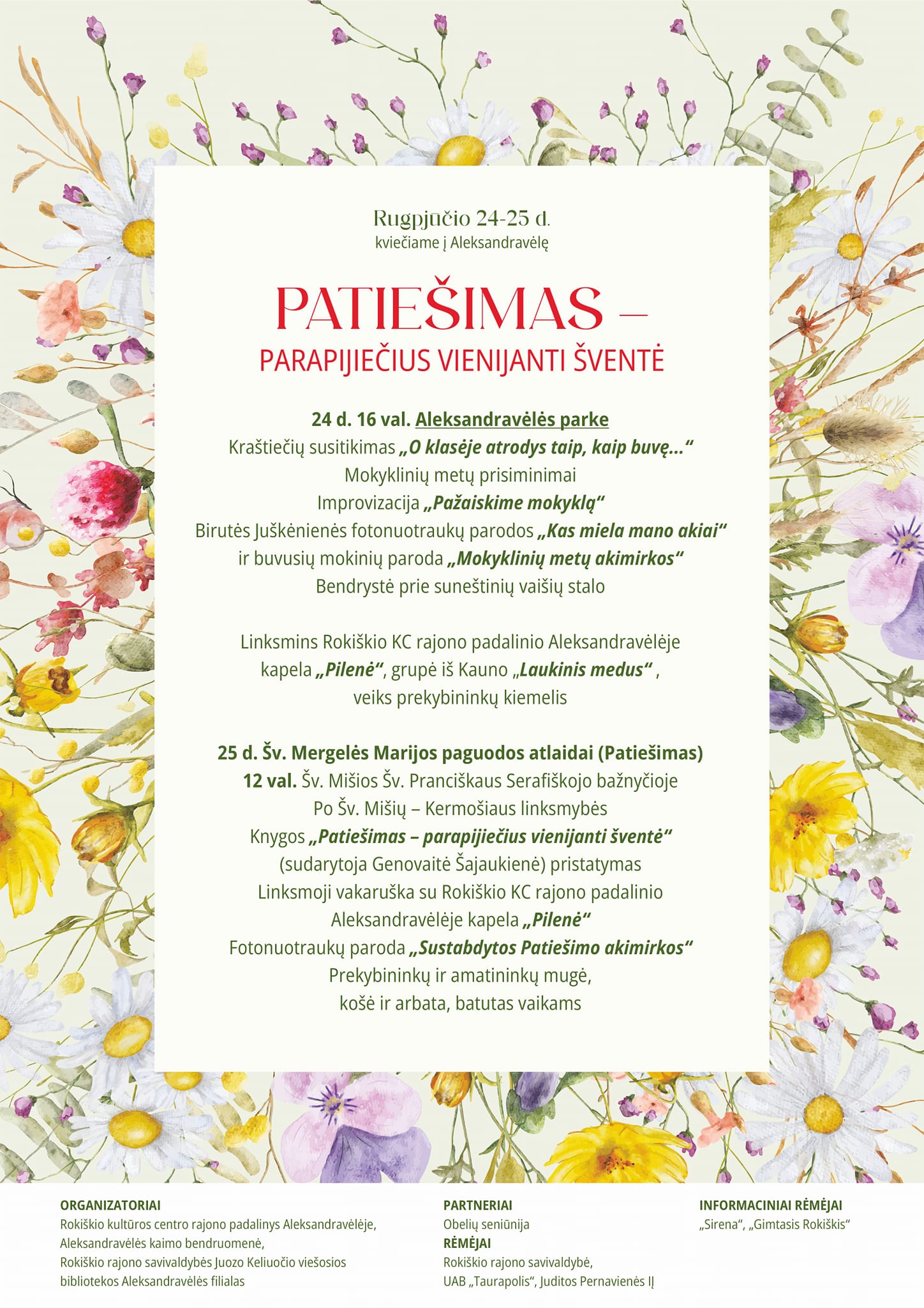 Rugpjūčio 24-25 d. kviečiame į Aleksandravėlę, kur vyks Patiešimas - parapijiečius vienijanti šventė.