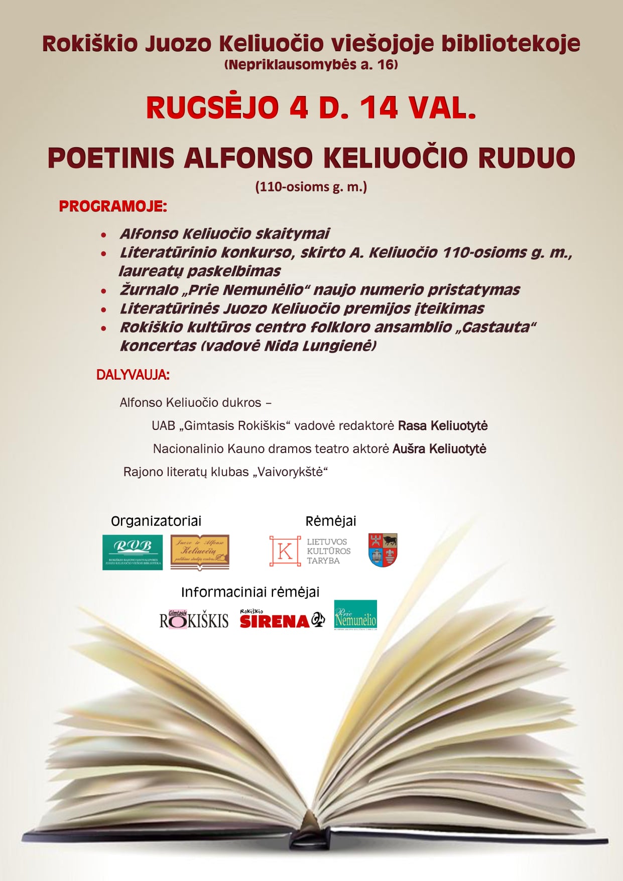 Rugsėjo 4 d. 14 val. Rokiškio rajono savivaldybės Juozo Keliuočio viešojoje bibliotekoje - poetinis Alfonso Keliuočio ruduo.