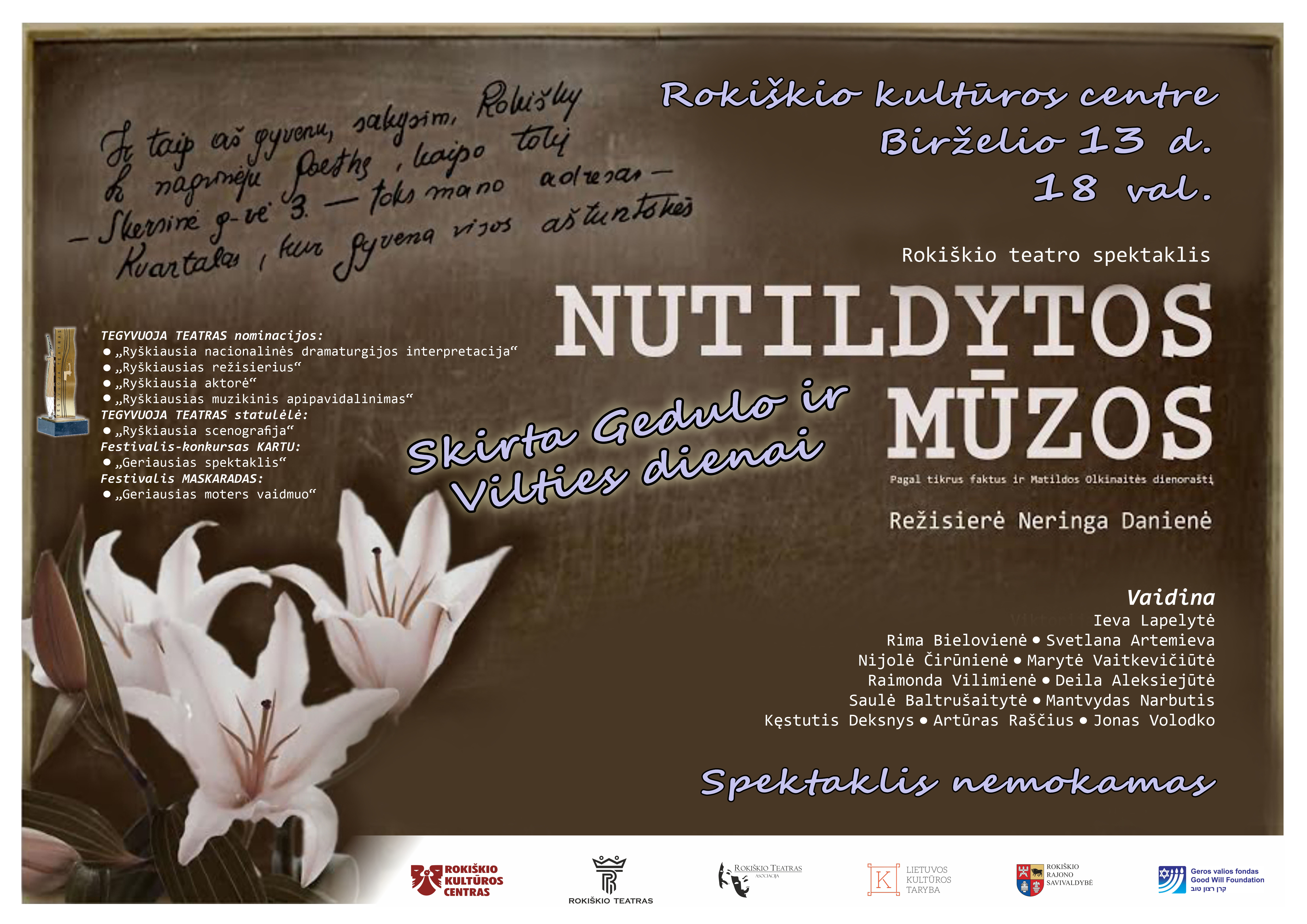 18.00 val. Asociacijos „Rokiškio teatras“ spektaklis „Nutildytos mūzos“ (rež. Neringa Danienė)