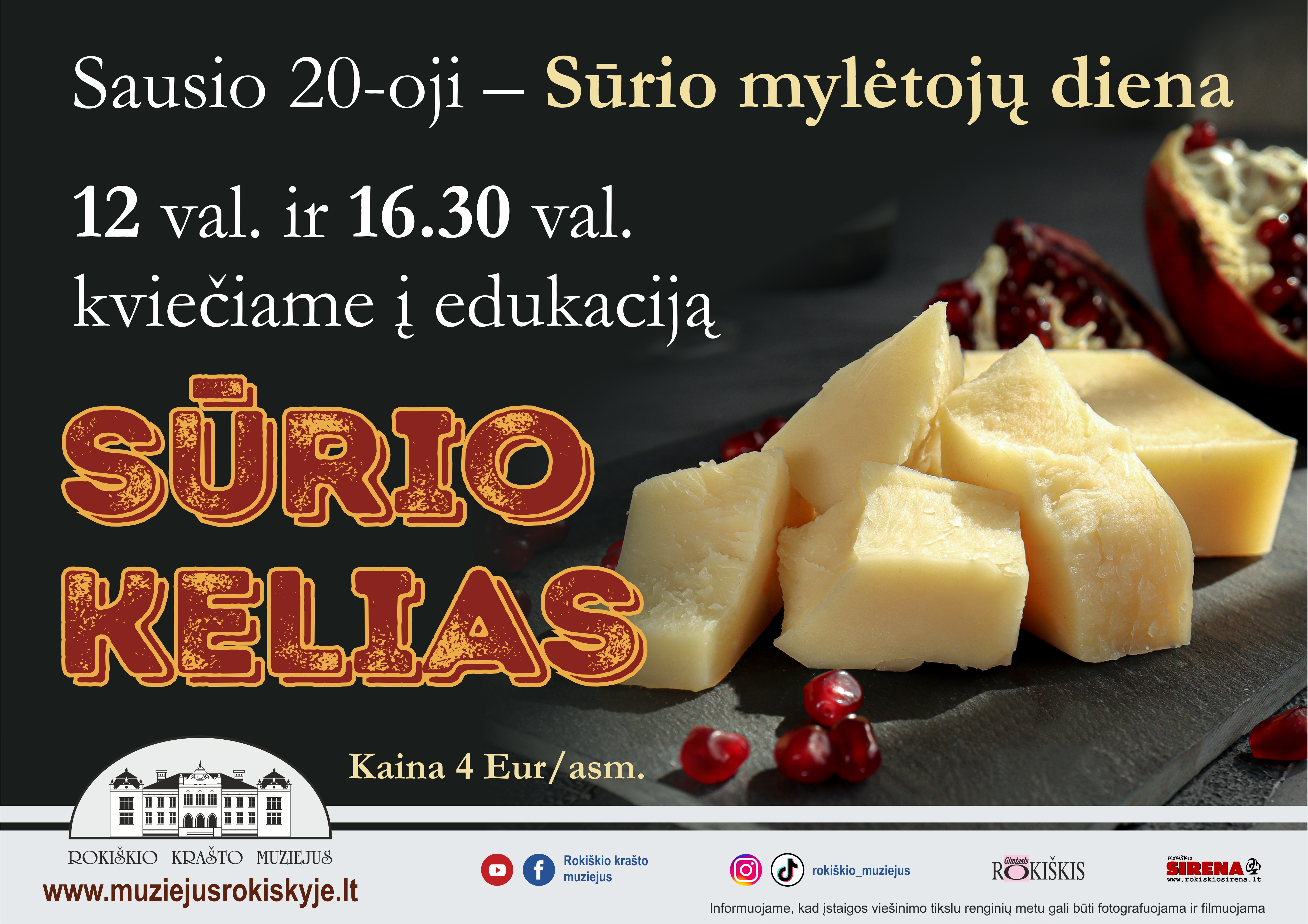 Sausio 20 d. – Sūrio mylėtojų diena. 12 ir 16.30 val. kviečiame į edukaciją SŪRIO KELIAS. Kaina 4 Eur, prašome registruotis tel. 8-615 44586
