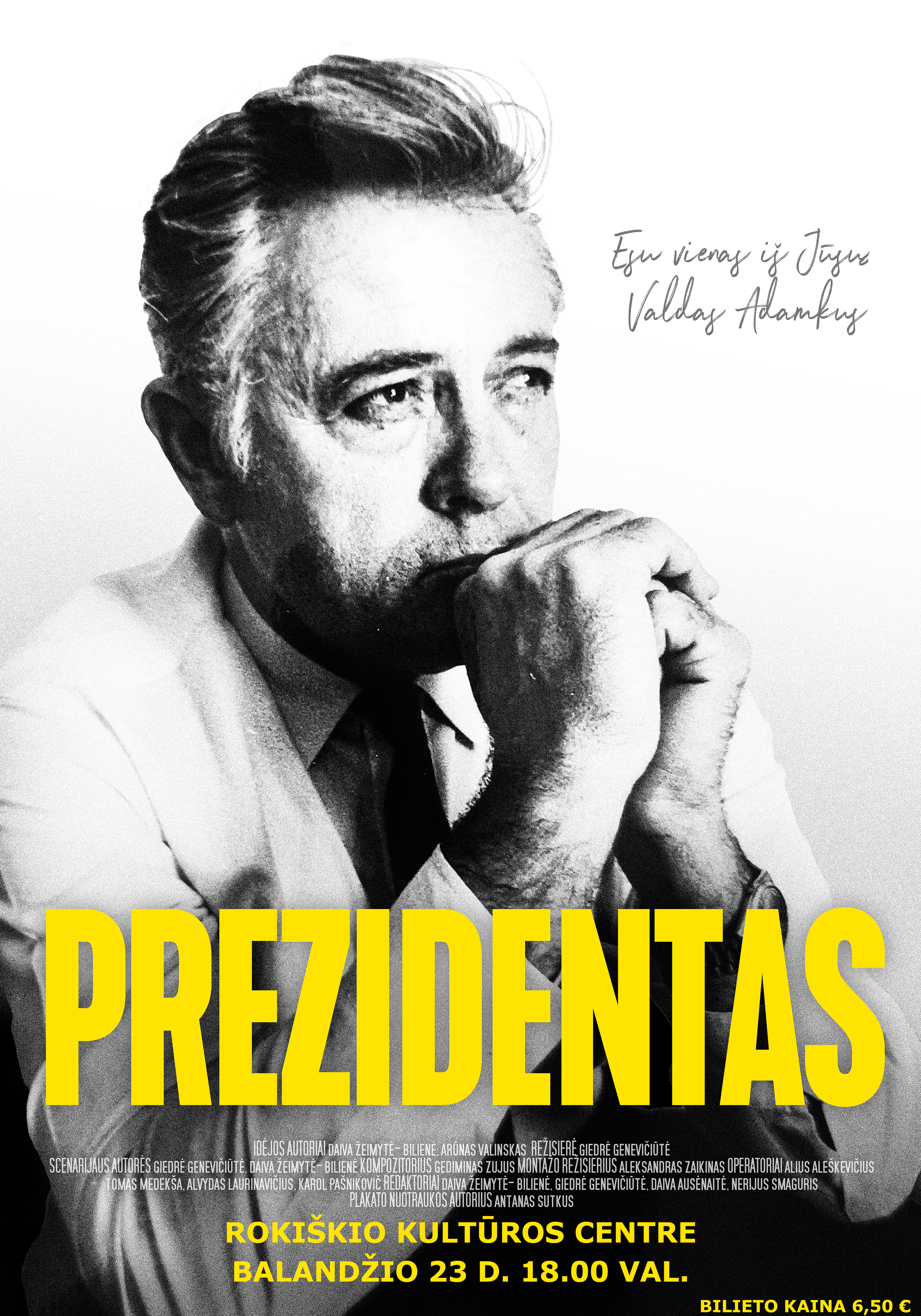 Balandžio 23 d. 18 val. Rokiškio kultūros centre - filmas apie vieną iškiliausių Lietuvos asmenybių – kadenciją baigusį prezidentą Valdą Adamkų.
