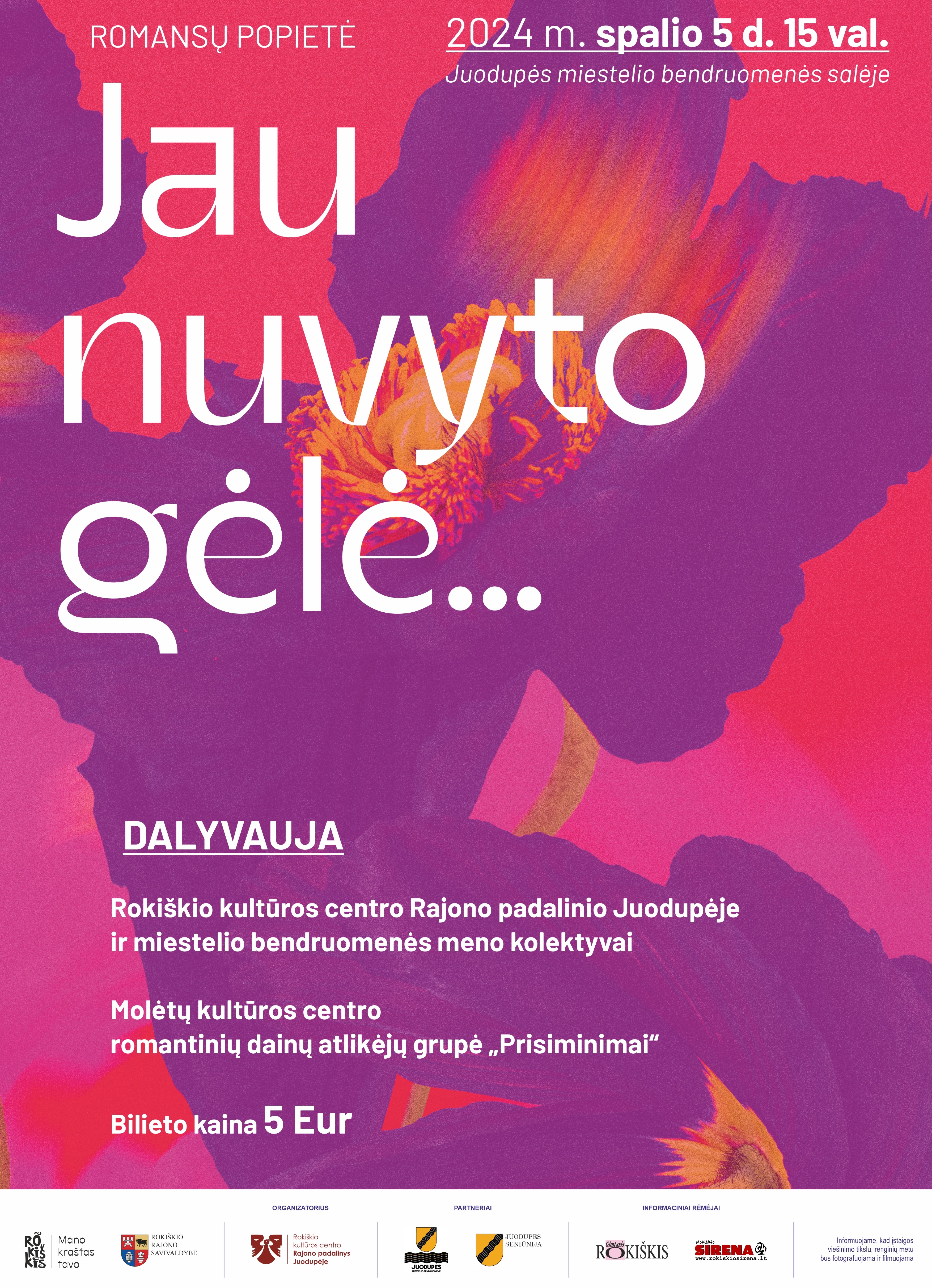 Spalio 5 d. 15 val. Juodupės miestelio bendruomenės salėje vyks Romansų popietė „Jau nuvyto gėlė...“