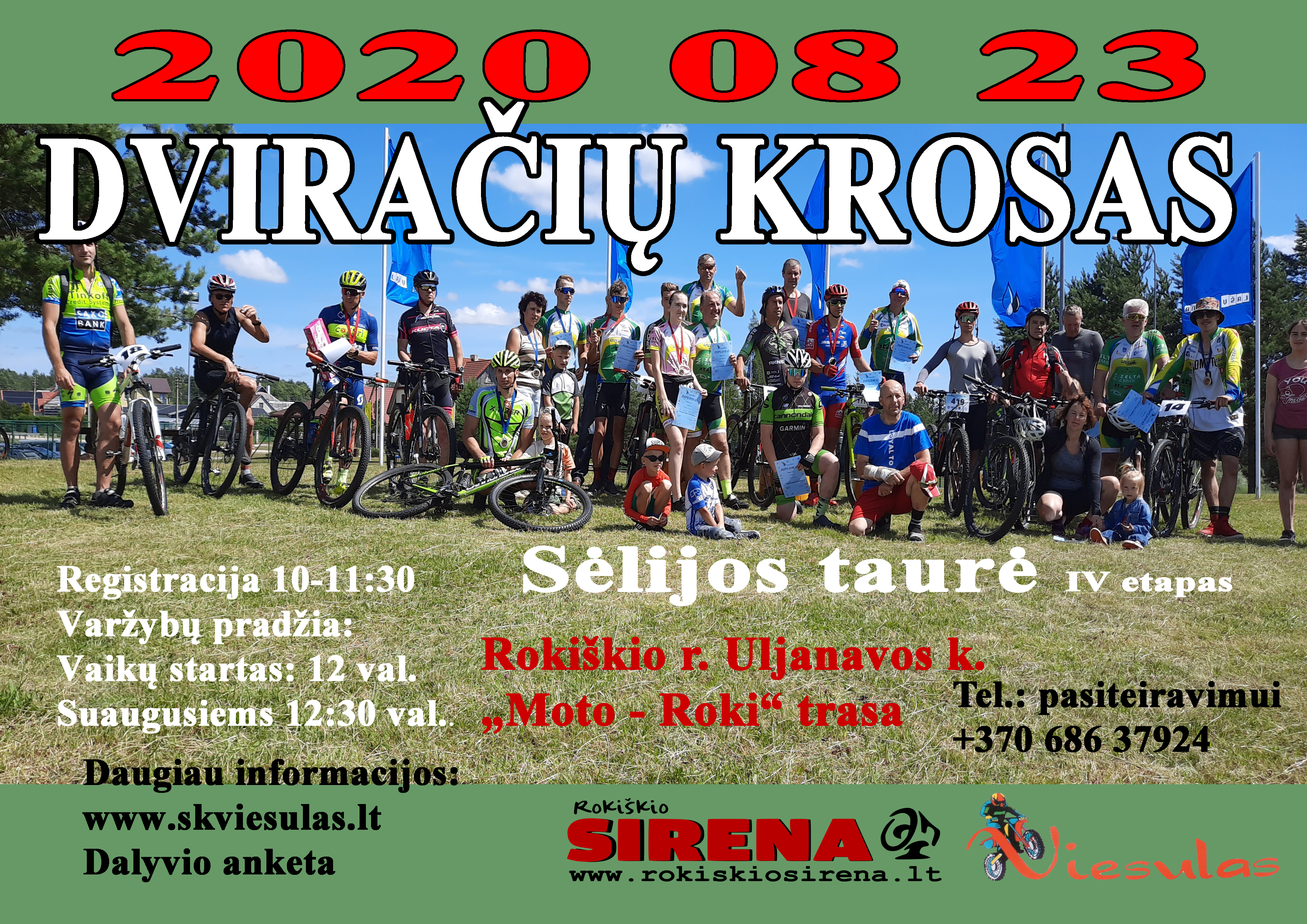 Rokiškio rajono automobilių ir motociklų sporto klubas „Viesulas“ tęsia dviračių kroso „Sėlijos taurė 2020“ varžybas ir kviečia į ketvirtąjį etapą, kuris vyks rugpjūčio 23 d., „Moto-roki“ trasoje, Uljanavos k., Rokiškio raj.