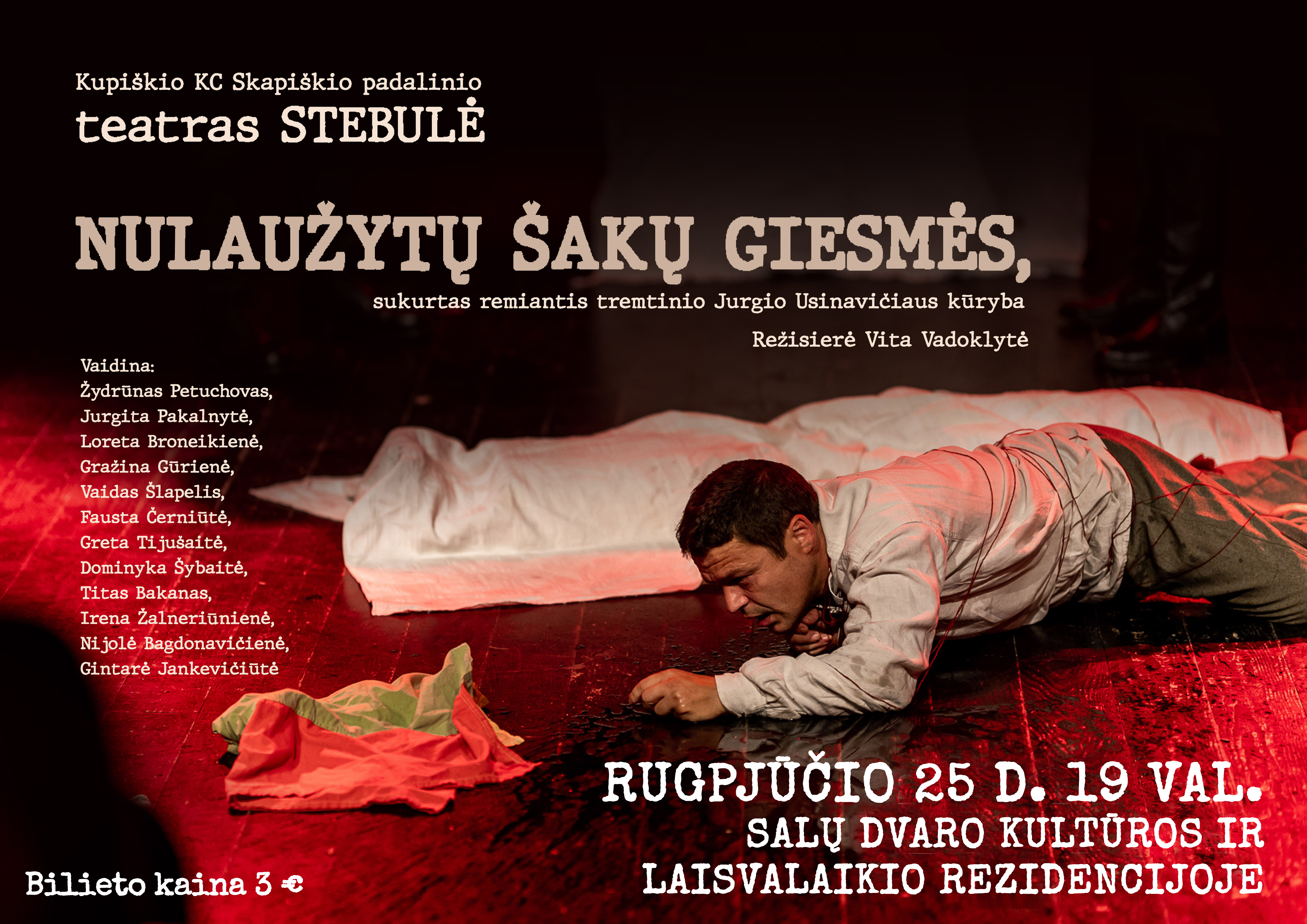 Rugpjūčio 25 dieną 19 val. Salų dvaro kultūros ir laisvalaikio rezidencijoje bus rodomas Kupiškio kultūros centro Skapiškio padalinio teatro Stebulė „Nulaužytų šakų giesmės“