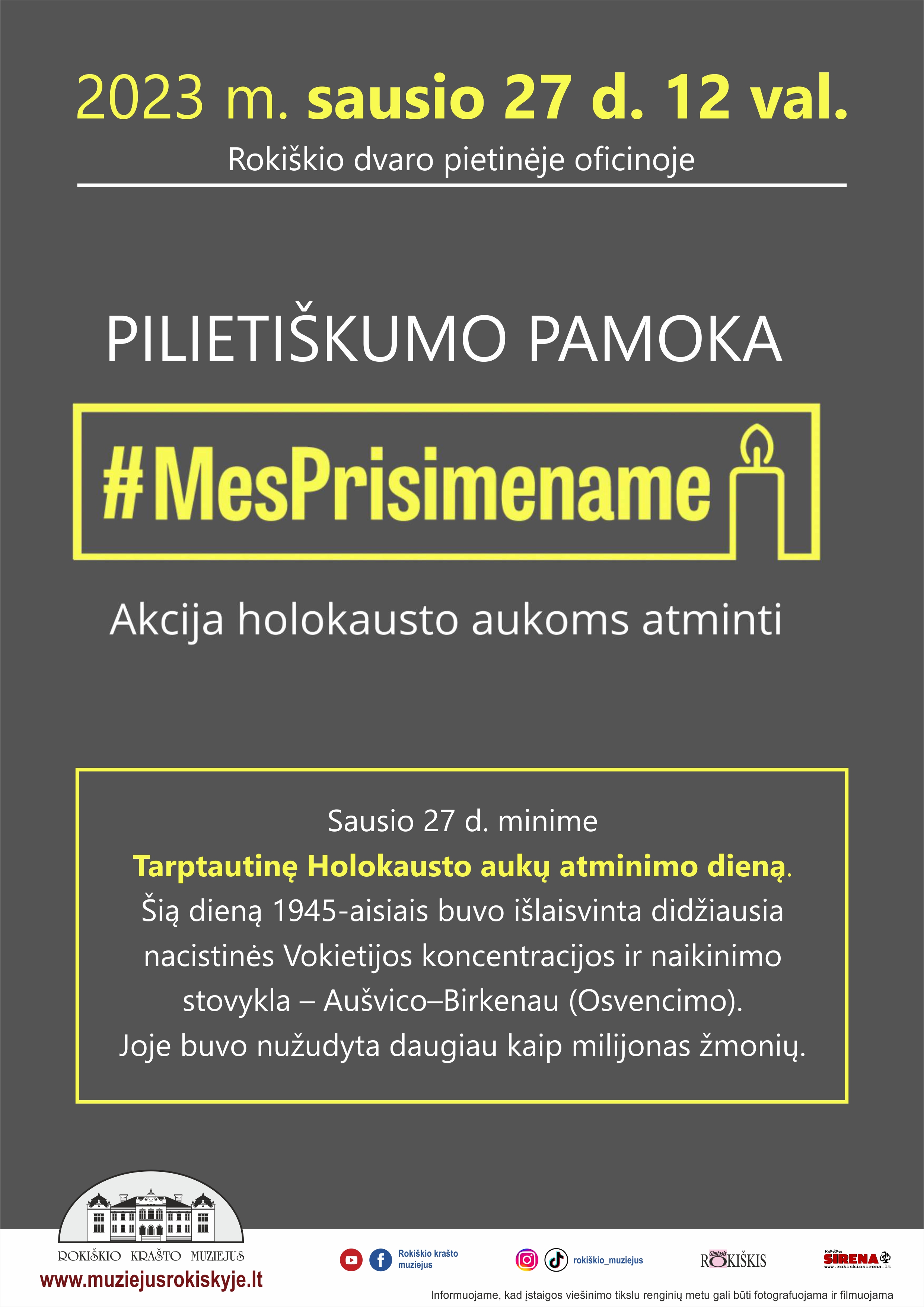 Sausio 27 d. minime Tarptautinę Holokausto aukų atminimo dieną.