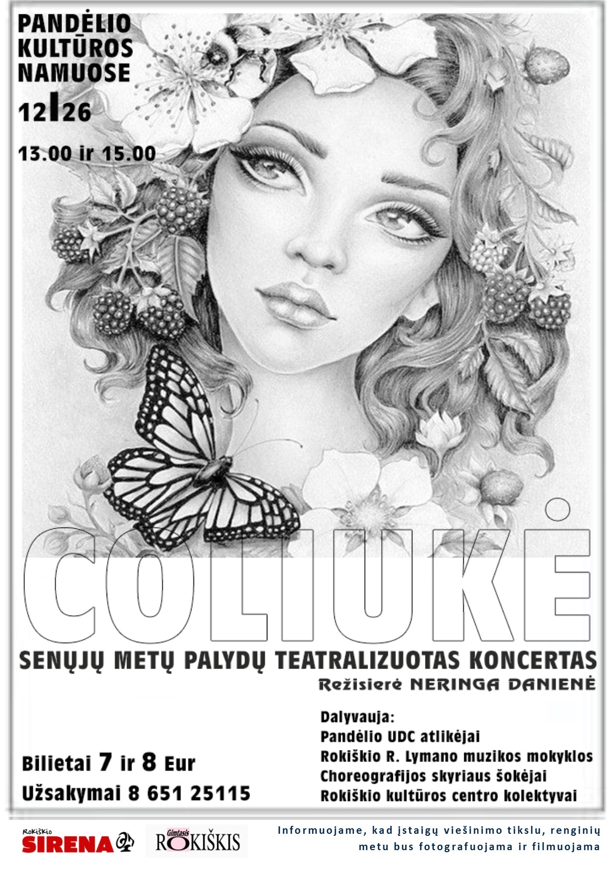 Gruodžio 26 d. 13.00 ir 15.00 val. Pandėlio kultūros namuose - teatralizuotas senųjų metų palydų koncertas „Coliukė“.