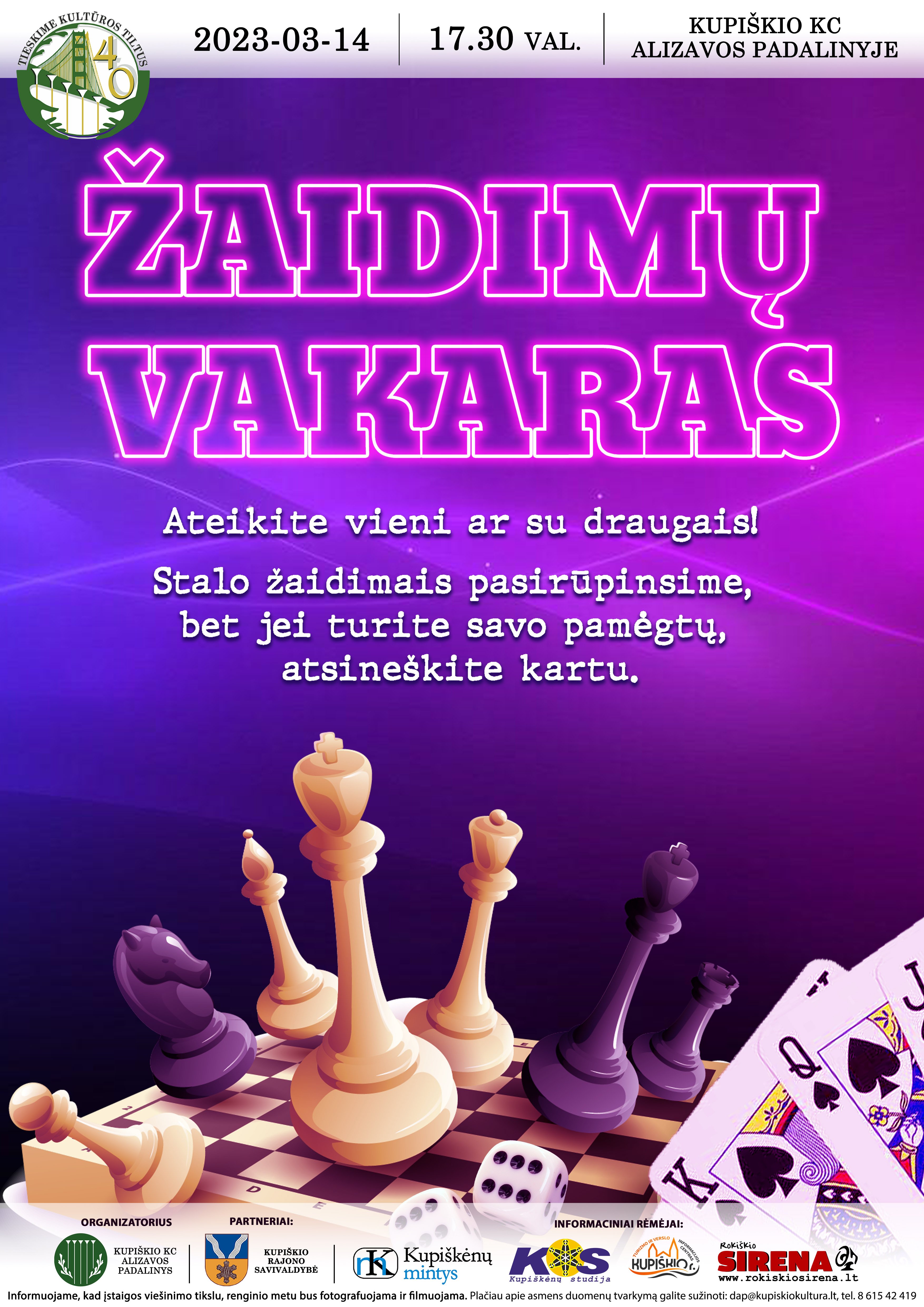 Mūsų žaidimų kolekciją sudaro per 20 žaidimų, tačiau galite atsinešti ir savo. Pažadame gerą laiko praleidimą tiek jauniems tiek vyresniems. Todėl nedvejodami atvykite kovo 14 d. 17:30 val. į Alizavos kultūros centrą.