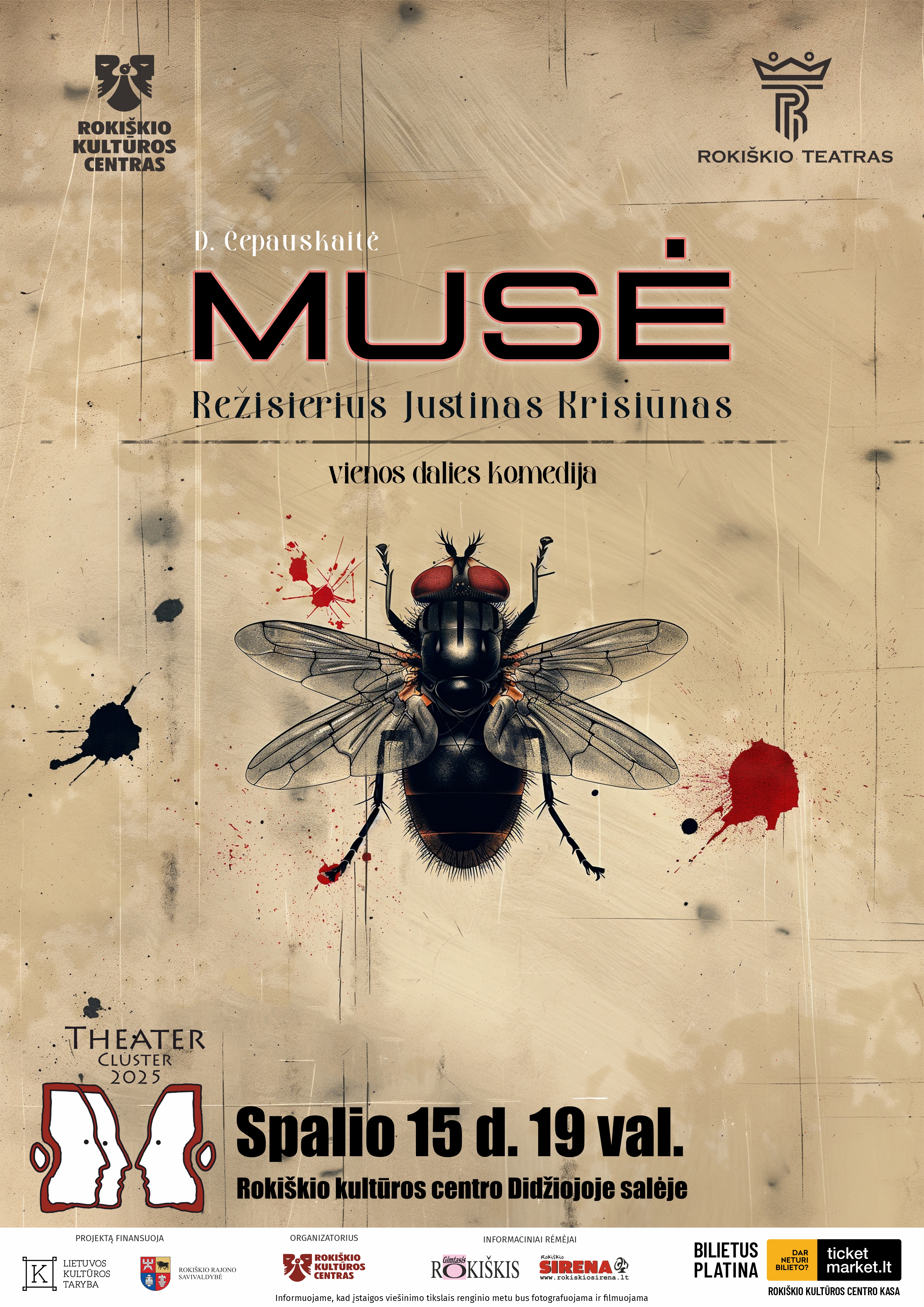 - Internetu https://www.ticketmarket.lt/lt/e/renginys/spektaklis-muse-theater-cluster-rokiskio-kulturos-centras-bilietai