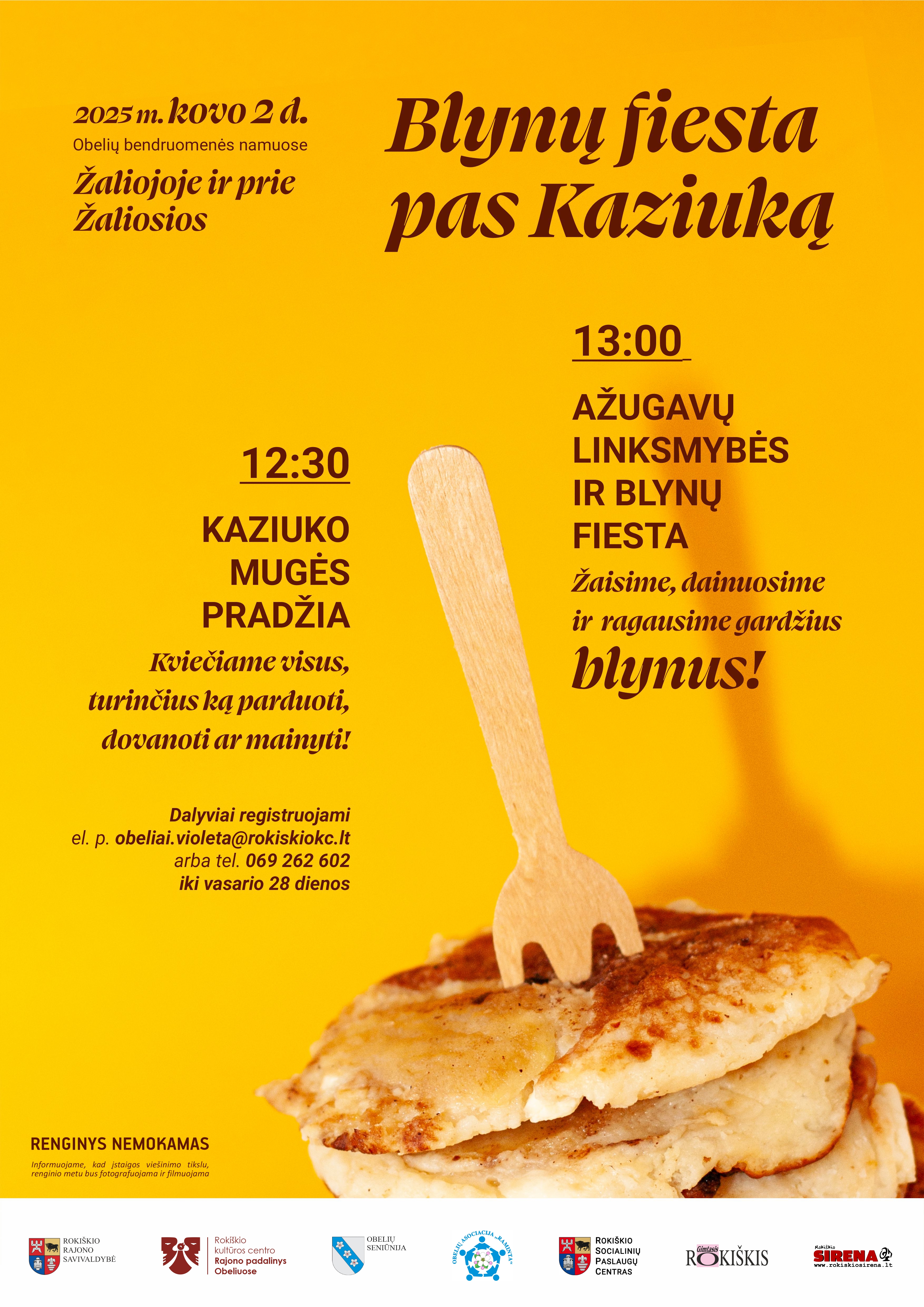 Dalyviai registruojami el. p. obeliai.violeta@rokiskiokc.lt arba tel. 069 262 602 iki vasario 28 dienos
