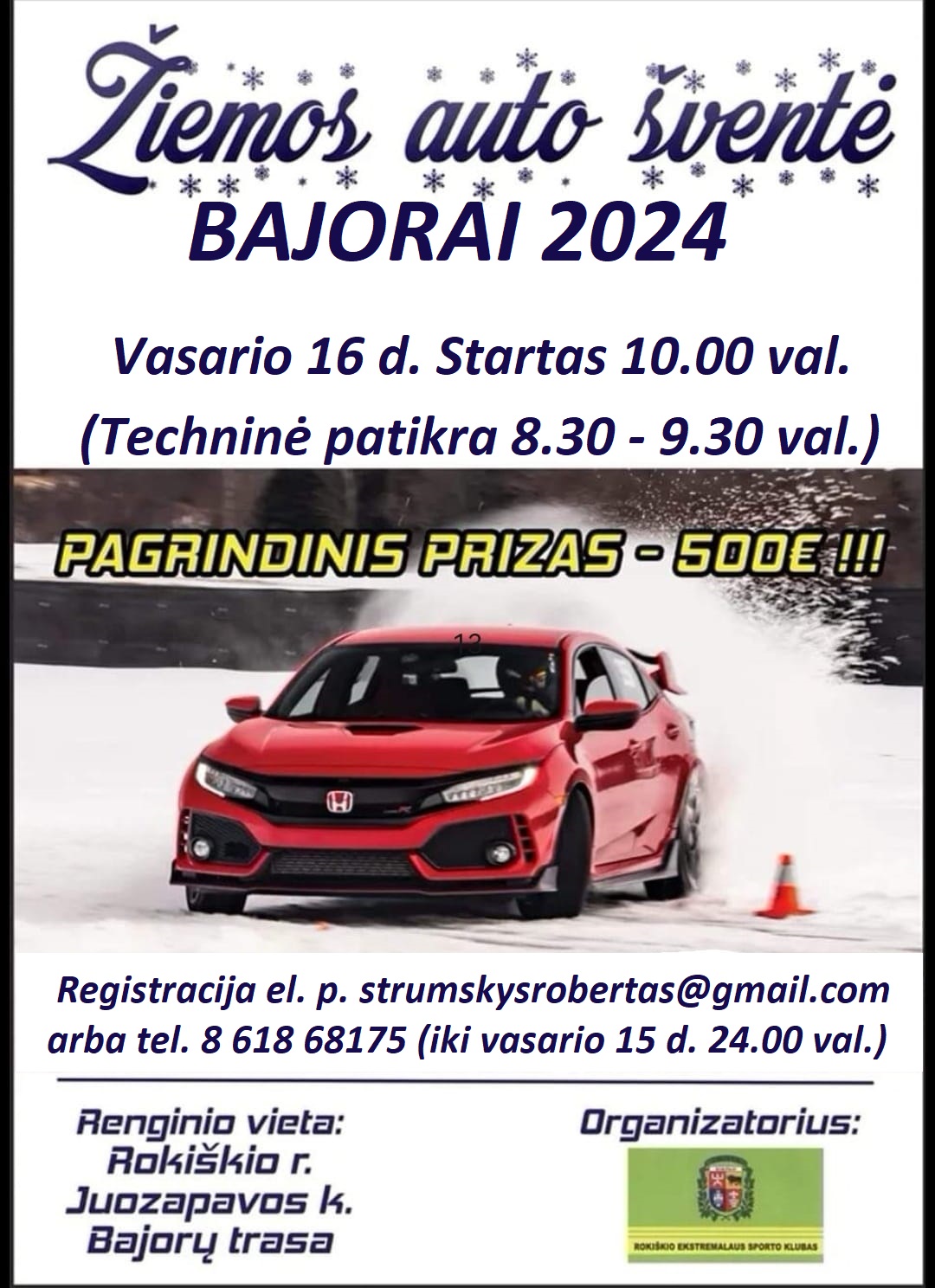 Vasario 16 d. 10 val. Juozapavos k. Bajorų trasoje - žiemos autošventė „Bajorai 2024“.