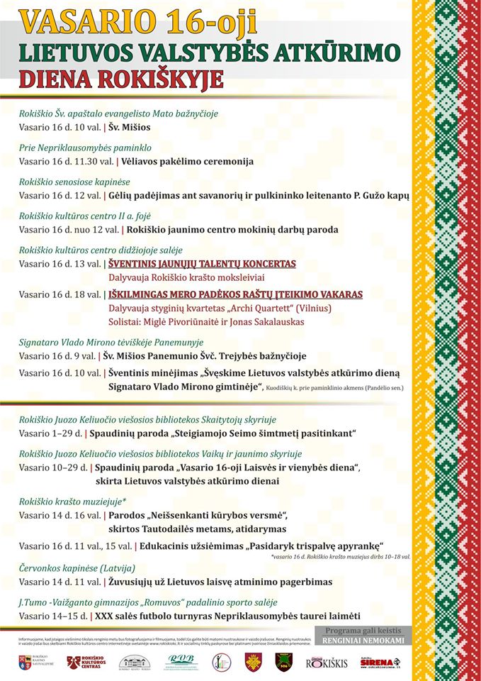 Vasario 16-oji – Lietuvos valstybės atkūrimo diena Rokiškyje