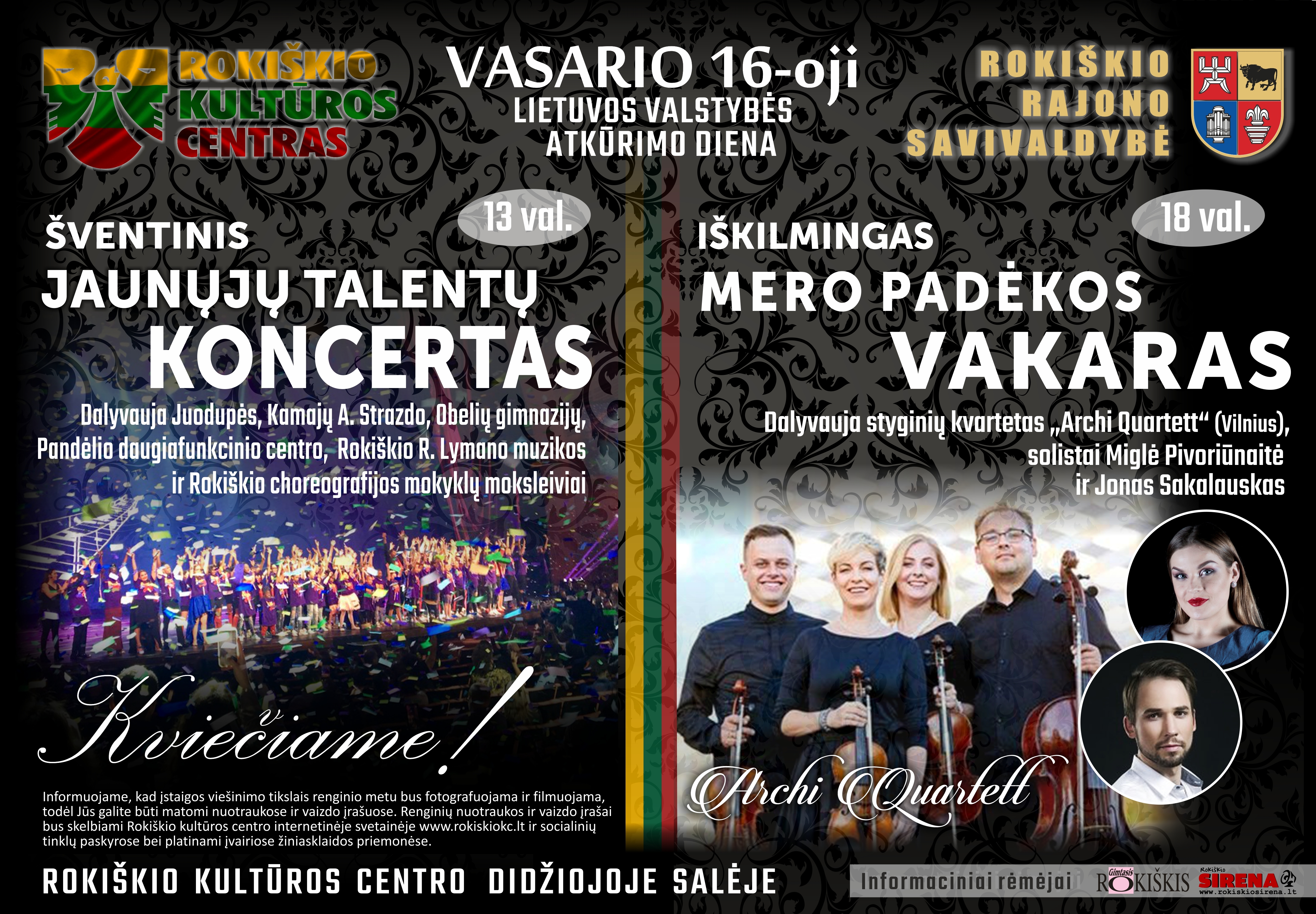 Vasario 16 d. 13 val. | ŠVENTINIS JAUNŲJŲ TALENTŲ KONCERTAS