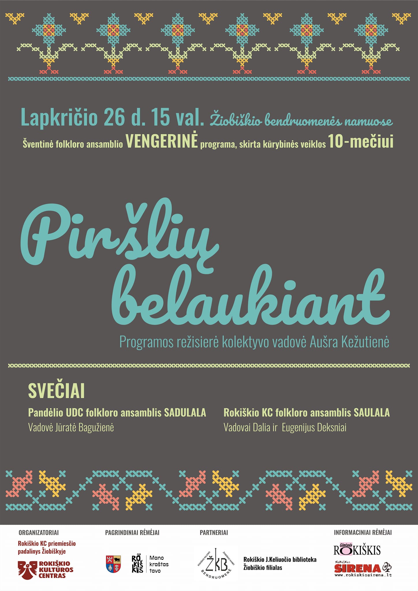 Lapkričio 26 d. 15 val. Žiobiškio bendruomenės namuose šventinė folkloro ansamblio VENGERINĖ programa, skirta kūrybinės veiklos 10-mečiui.