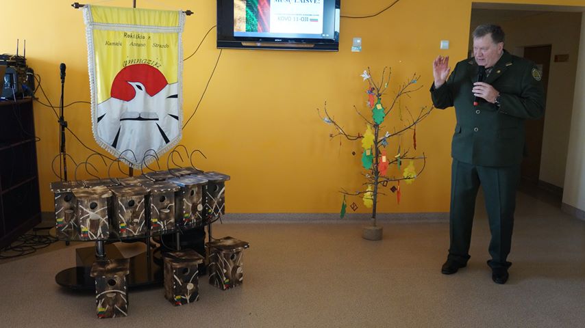 Dalinamės akimirkomis iš Kamajų Antano Strazdo gimnazijoje vykusios, Lietuvos Nepriklausomybės atkūrimo 30-mečiui skirtos inkilėlių kėlimo akcijos. Gimnazija taip pat sulaukė svečio, girininko S. Markevičiaus.