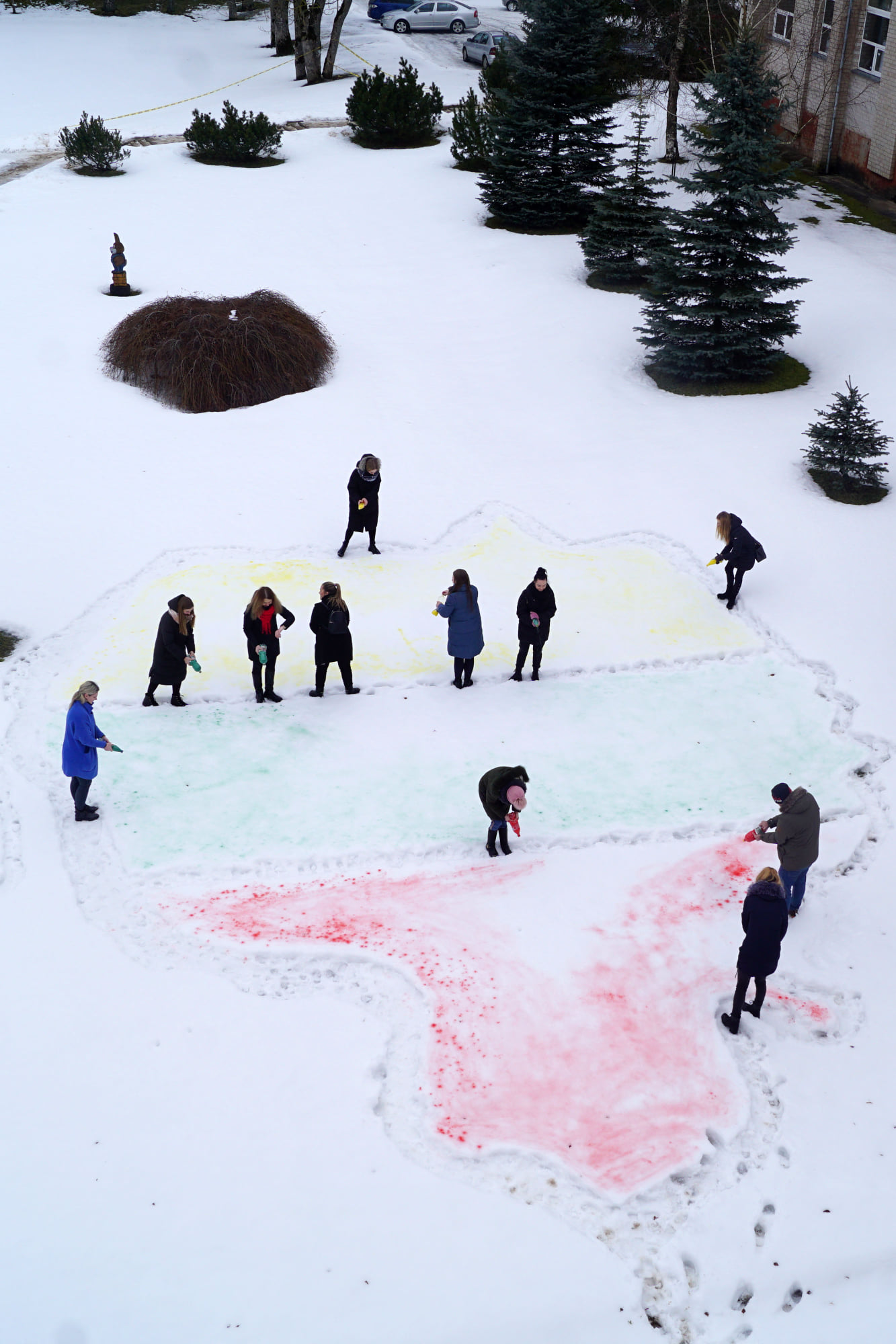 Vėliau renginio vedėja pakvietė visus šventės dalyvius įsiamžinti bendroje nuotraukoje ir sudalyvauti edukaciniame užsiėmime „Spalvos sniege“.