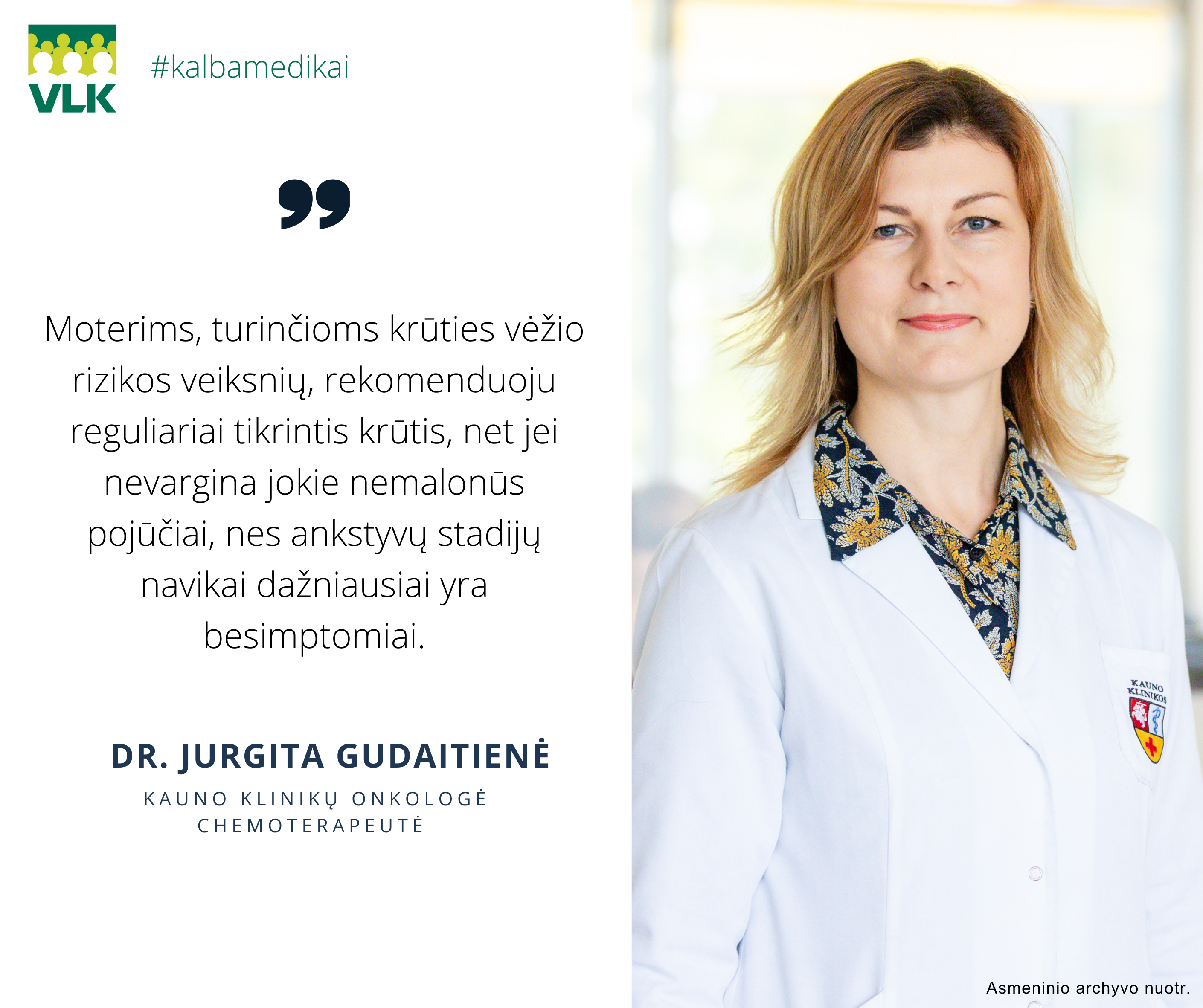 Dr. Jurgita Gudaitienė, Lietuvos sveikatos mokslų universiteto ligoninės Kauno klinikų onkologė chemoterapeutė, besispecializuojanti krūties vėžio srityje, pasakoja, kad krūties vėžys kiek rečiau palyginti su ankstesniu dešimtmečiu diagnozuojamas pažengusios ar išplitusios stadijos. Dažniausiai ši onkologinė liga nustatoma ankstyvos – I ar II – stadijos. Teigiamus pokyčius, gydytojos manymu, lemia visuomenės švietimas ir onkologijos mokslo pažanga.