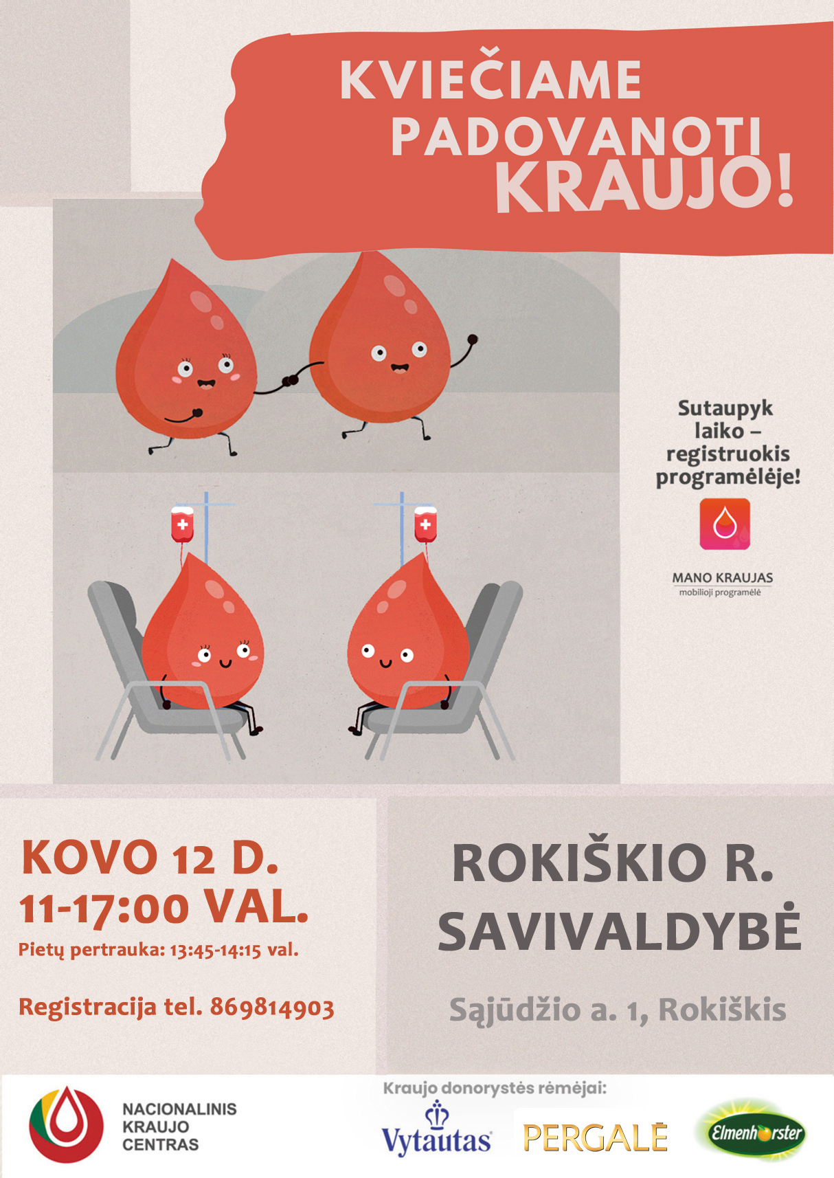 Kovo 12 d. 11-17 val. Rokiškio rajono savivaldybėje vyks kraujo donorystės akcija.