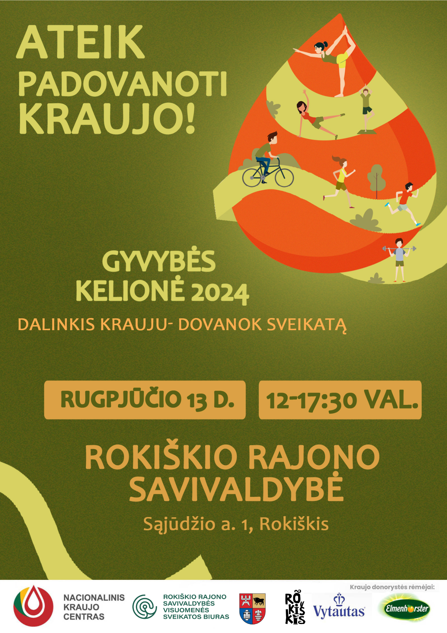 Kraujo paaukoti Rokiškyje galite rugpjūčio 13 d. 12-17.30 val. Rokiškio rajono savivaldybės pastate (Sąjūdžio a. 1, Rokiškis).