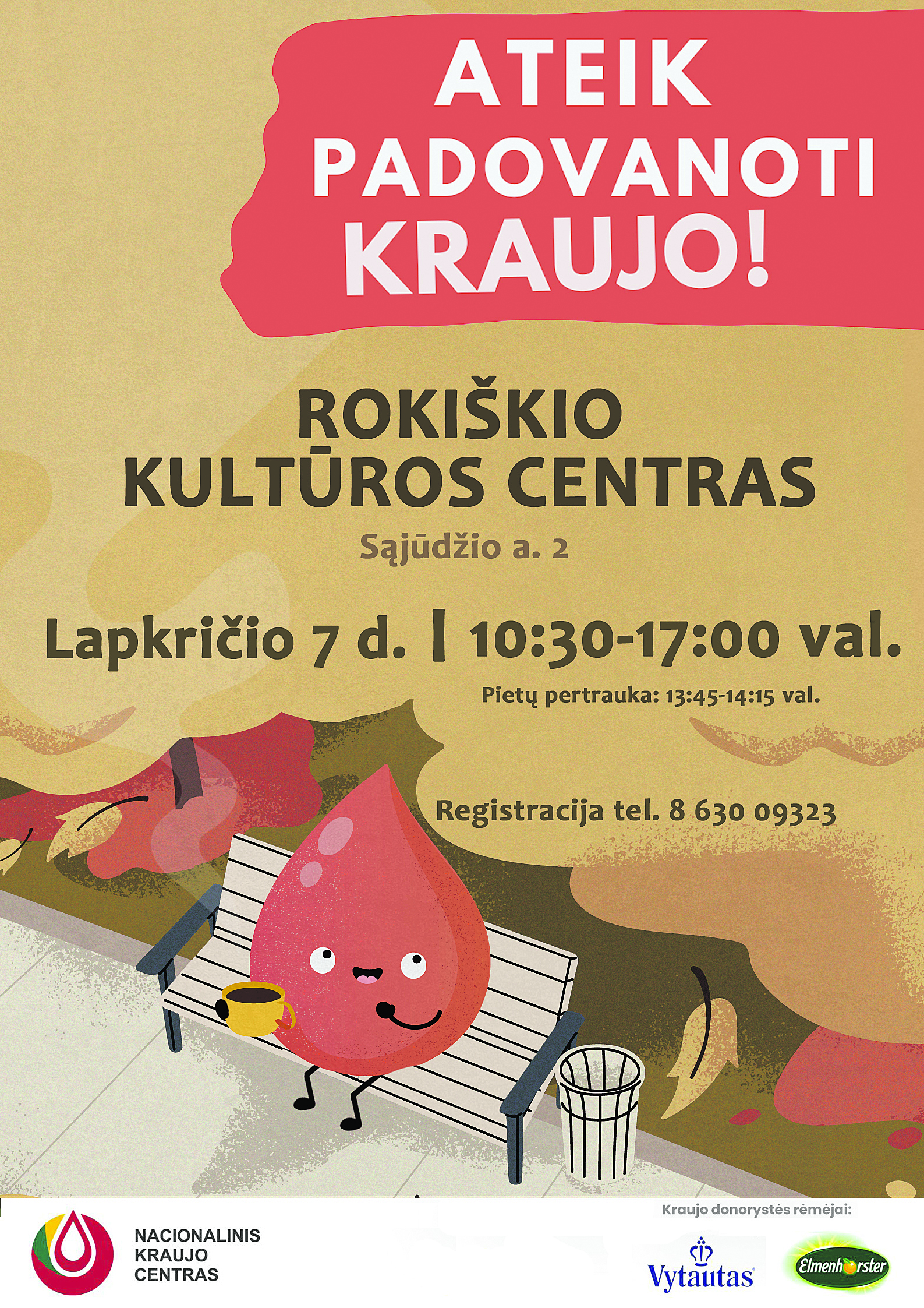 Lapkričio 7 d. 10.30 - 17.00 val. - kraujo donorystės akcija Rokiškyje (Rokiškio kultūros centre, Sąjūdžio a. 2).