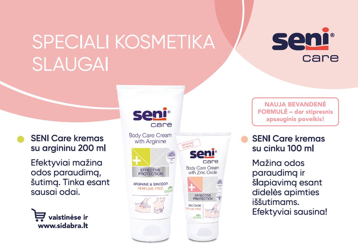 „SENI Care“ apsauginis kremas su argininu skirtas kasdienei odos priežiūrai ir jos apsaugai. Šis kremas yra lengvai užtepamas, sukuria ploną, bet labai patvarią apsauginę plėvelę, efektyviai mažina odos raudonį, šalina dėl dirginimo atsiradusį diskomfortą. „SENI Care“ apsauginis kremas su cinko oksidu sukuria itin stiprų barjerą. Jį patartina naudoti esant dideliam odos sudirgimui, šlapiavimui ar odos pažeidimams. Abu produktai labai veiksmingai apsaugo odą nuo šlapimo nelaikymo sukeliamų odos problemų. Jų pasirinkimas priklauso nuo odos būklės ir asmeninių poreikių.