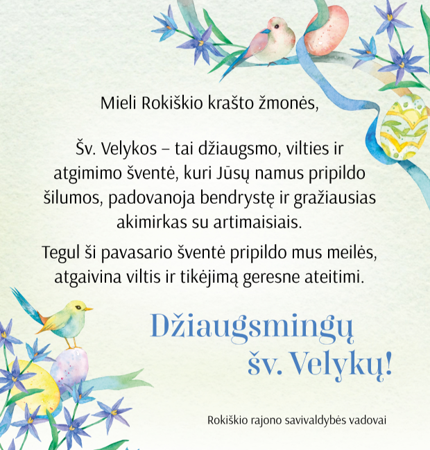 Rokiškio rajono savivaldybės vadovų sveikinimas šv. Velykų proga.