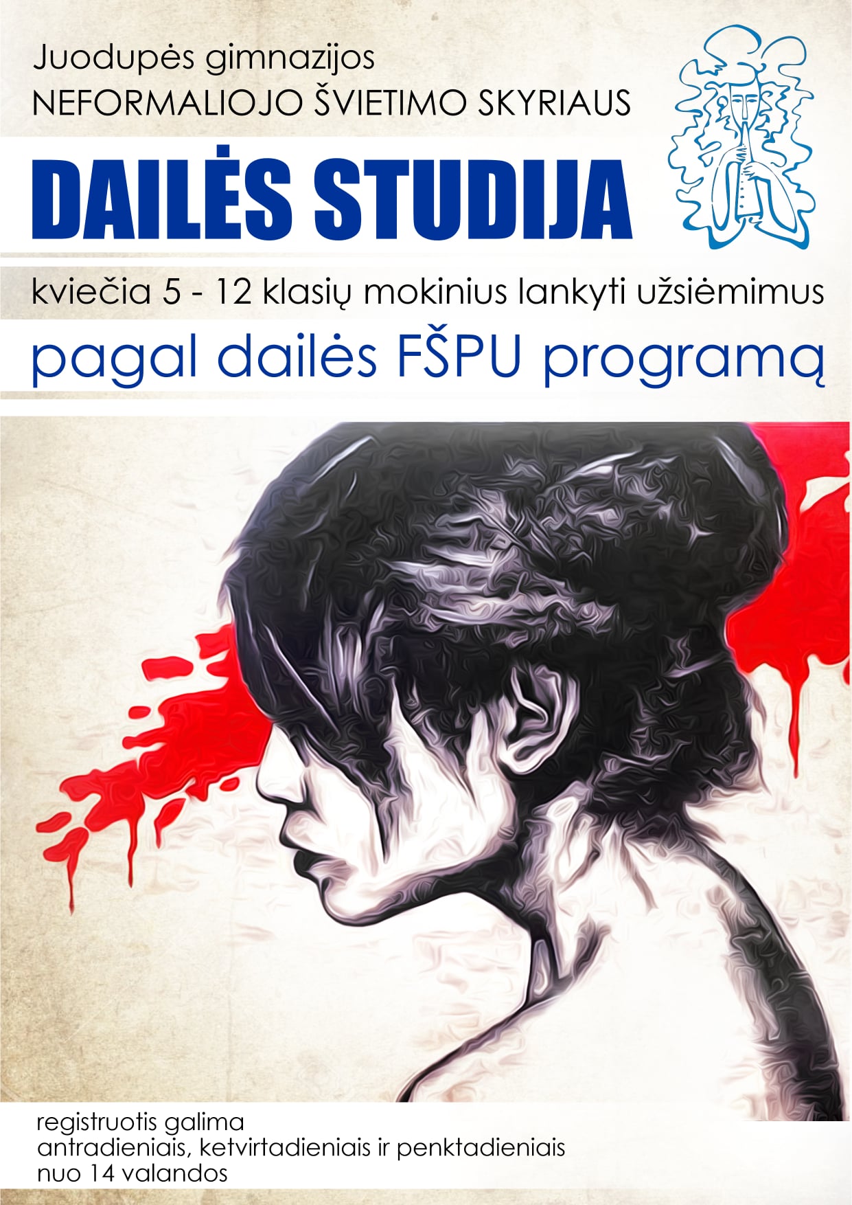 Juodupės gimnazijos neformaliojo švietimo skyrius kviečia 5-12 klasių mokinius lankyti užsiėmimus dailės studijoje pagal dailės FŠPU programą.