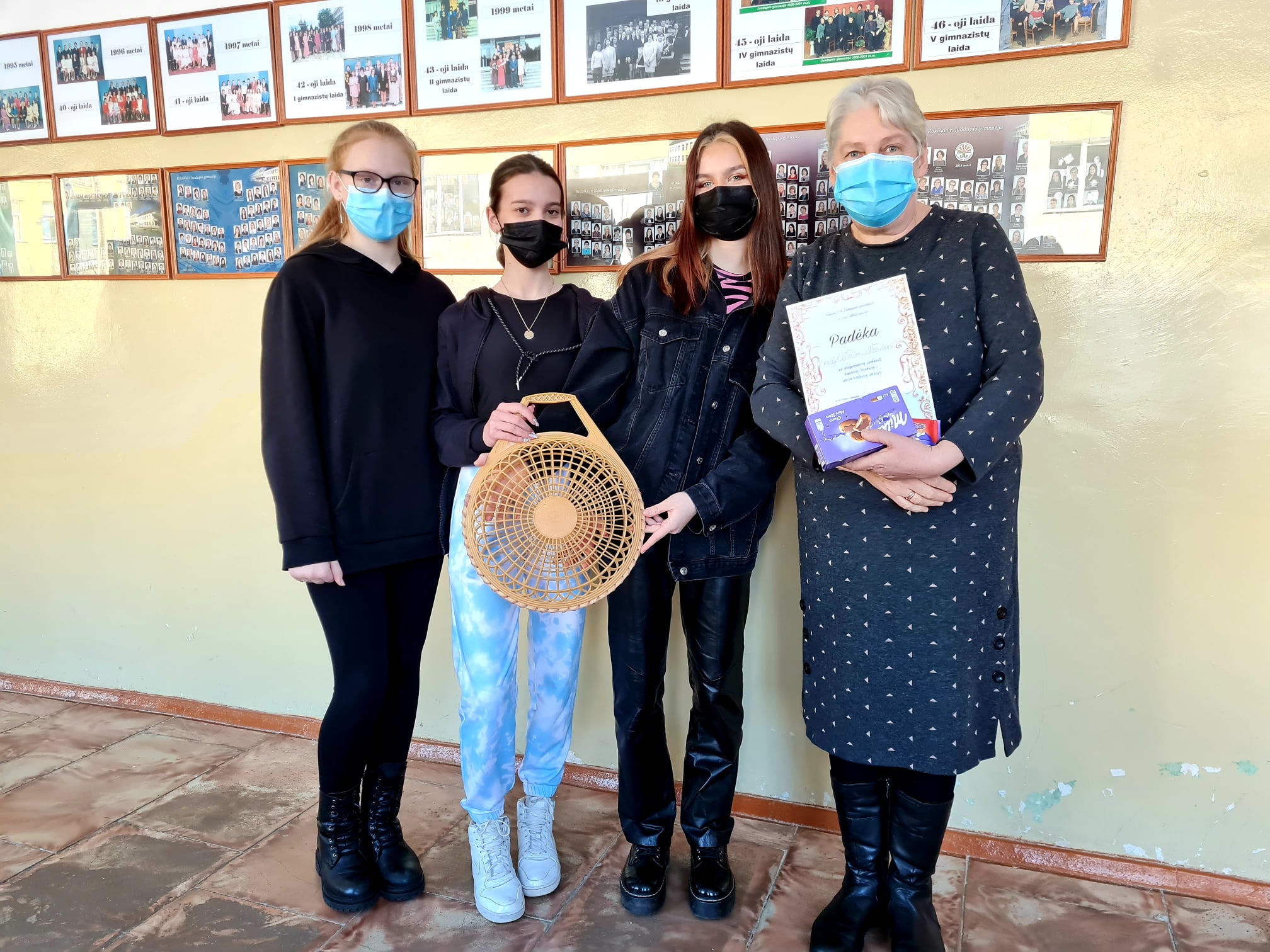 Originaliausi, aktyviausi akcijos dalyviai pradžiuginti saldžiomis dovanėlėmis ir padėkomis: 5 klasės mokinė U. Maniušytė, Ig klasės mokinė E. Bieliūnaitė, aktyviausi ir vieningiausi akcijos dalyviai 6 klasės mokiniai bei lietuvių kalbos ir literatūros mokytoja V. Varnienė.