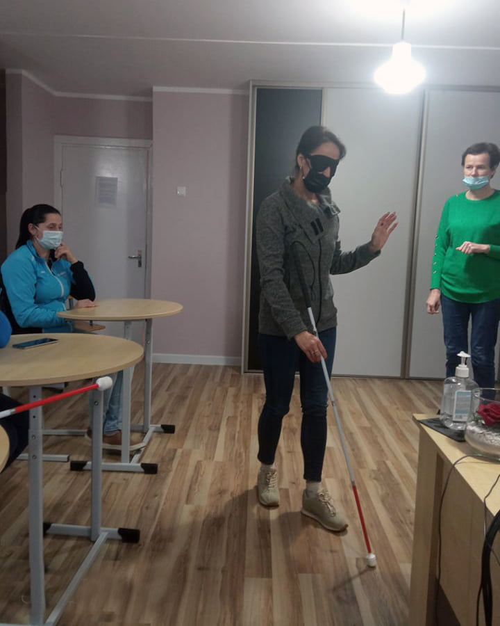 VŠĮ LASS Šiaurės rytų centro Rokiškio filialo darbuotojos – Rokiškio technologijos, verslo ir žemės ūkio mokyklos socialinio darbuotojo padėjėjo profesijos mokinės Jolanta ir Eglė per pirmąsias pamokas pristatė ir papasakojo apie silpnaregių bei aklųjų gyvenimą, kasdienes problemas. Mokiniai pabandė pajusti ką reiškia nieko nematyti akimis, bet pajusti širdimi.