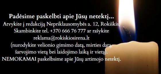 Velionė pašarvota Rokiškio laidojimo namuose.