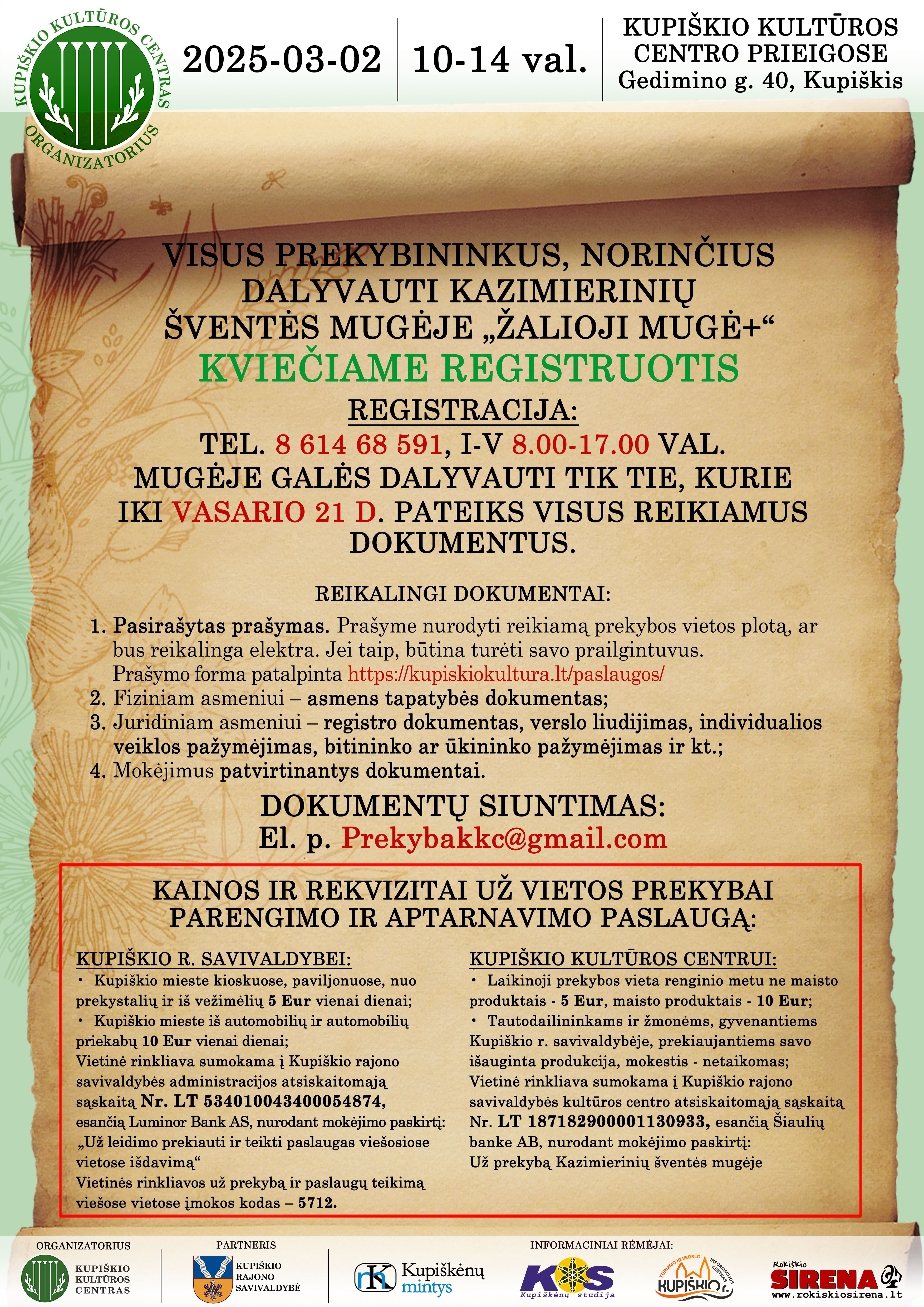 Kupiškio rajono savivaldybės Kultūros centras viečia prekybininkus registruotis į Kazimierinių šventės mugę.