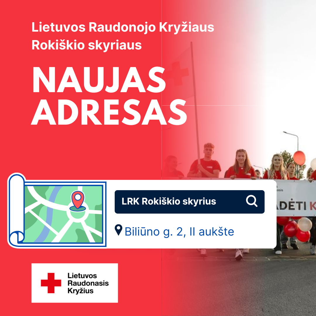 Lietuvos Raudonojo Kryžiaus Rokiškio skyrius informuoja, jog pasikeitė organizacijos buveinės adresas.
